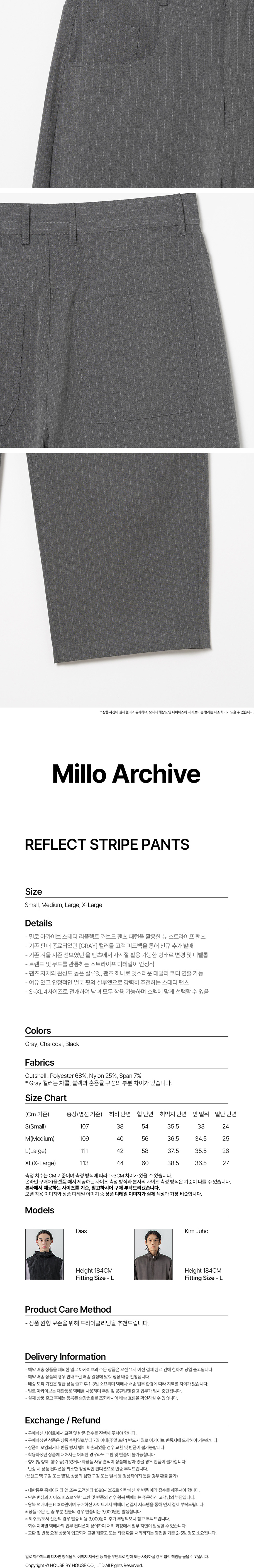 밀로 아카이브 리플렉트 스트라이프 팬츠 그레이