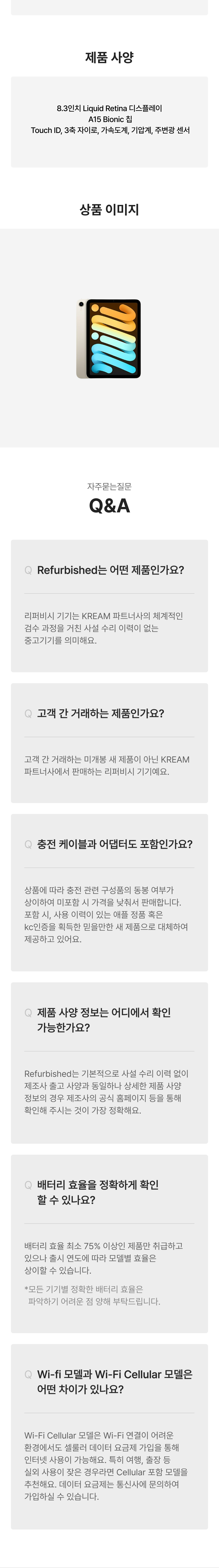[S등급] 리퍼비시 아이패드 미니 6세대 wifi A15 Bionic 64기가 스타라이트