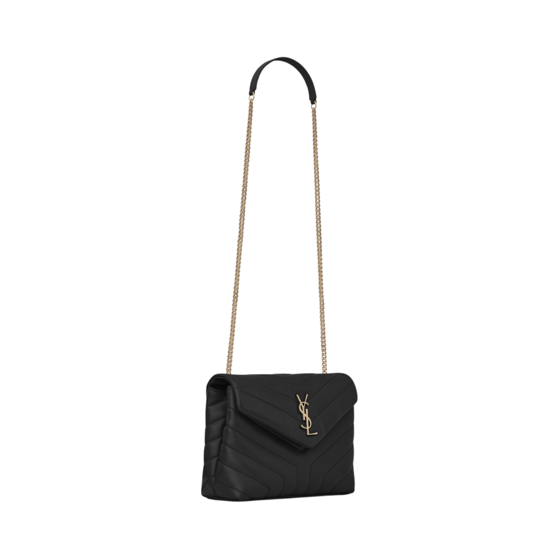 Saint Laurent Bronze Monogram Loulou Small Bag in Matelasse Y Leather Black