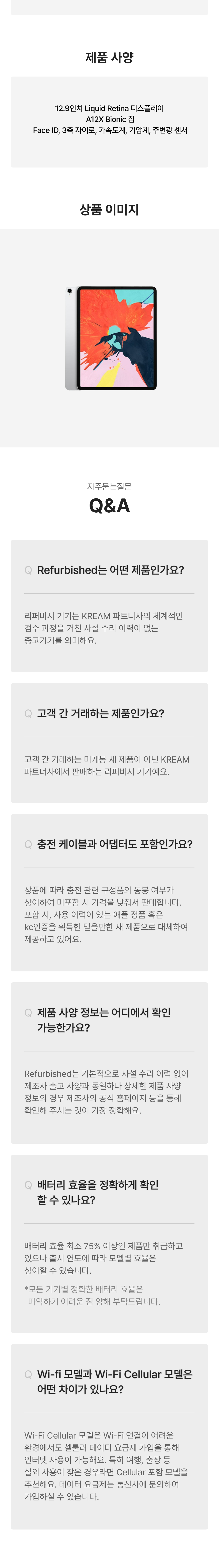 [A등급] 리퍼비시 아이패드 프로 12.9 3세대 wifi A12X Bionic 512기가 실버