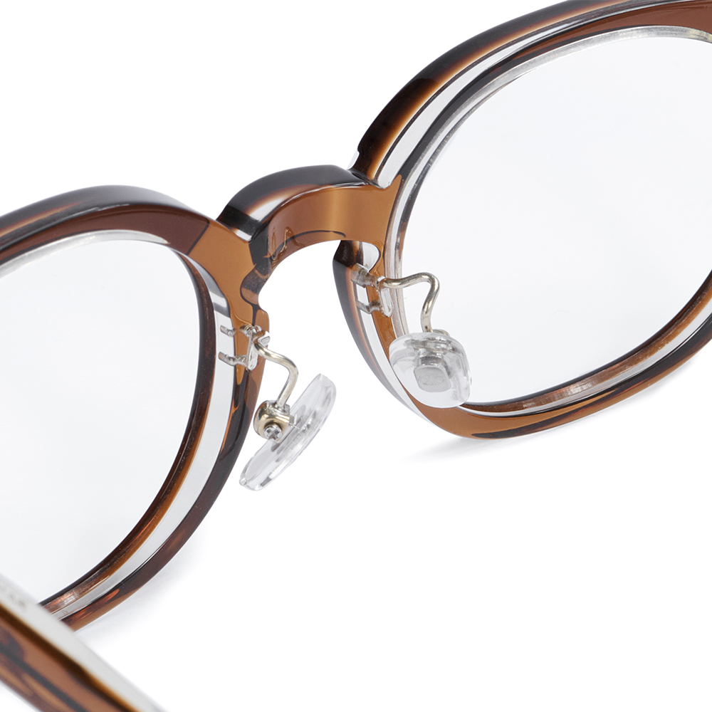 제품정보. - 8mm 두께의 소재로 사용 - 적절한 두께 조절로 기분좋은 착용감 - 두 칼라가 레이어드 되어 깊이감 있는 색감 연출 - 전면부와 템플 경첩에 리벳 디테일 - 심볼이 삽인된 노즈패드 디테일 More Info. - Cellulose Acetate - Black, Brown - Free Size - Made In Korea