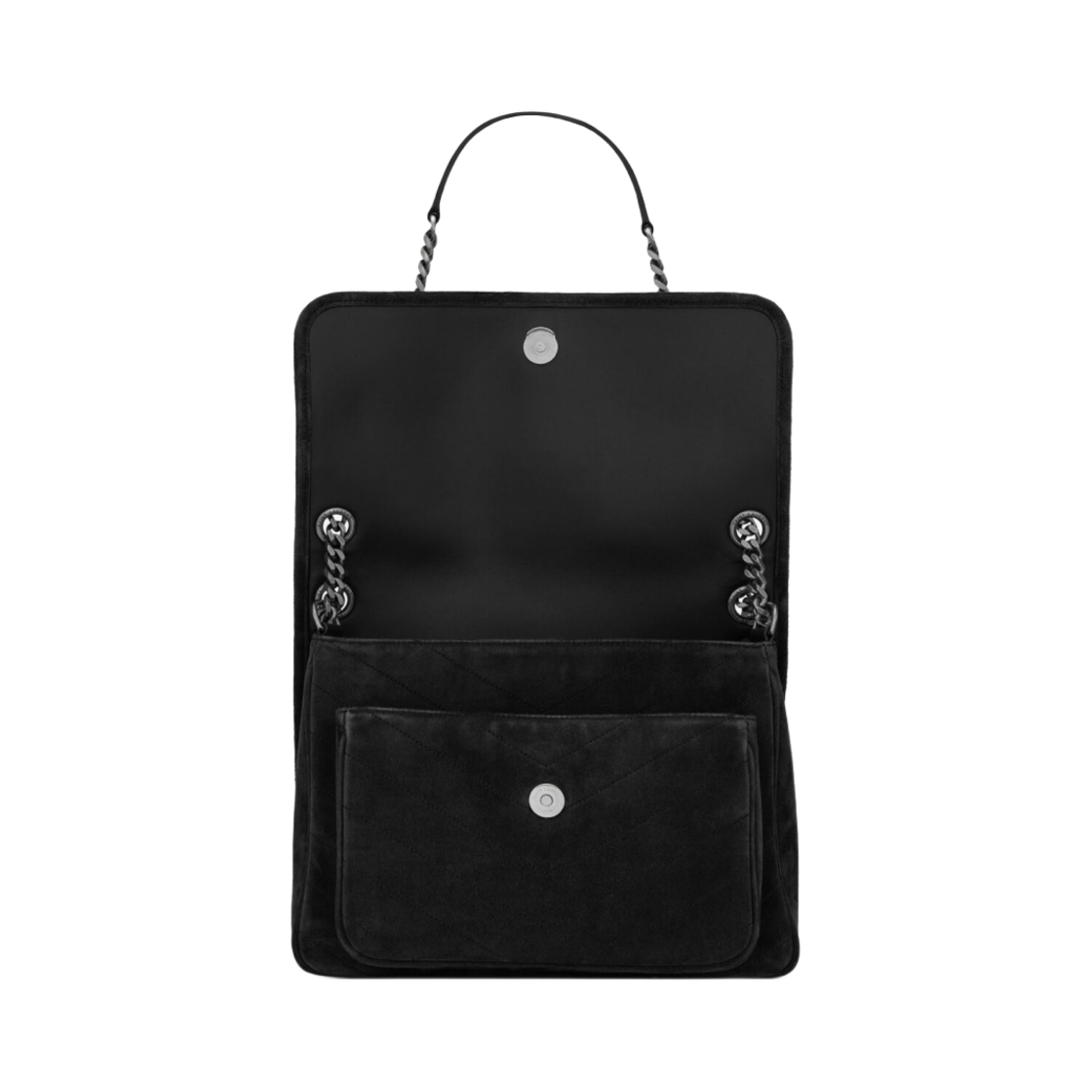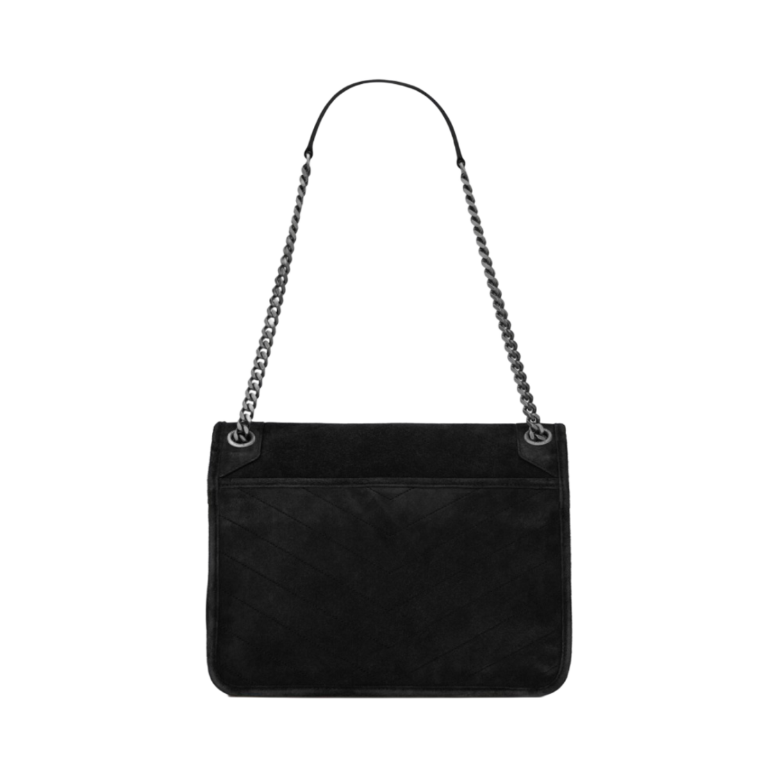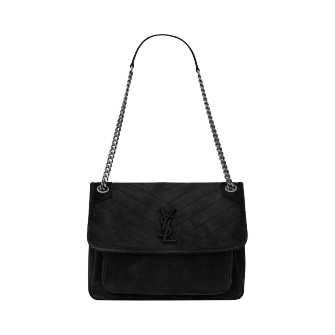 생로랑 스웨이드 블랙 모노그램 니키 미디움백 실버 체인 스트랩 블랙