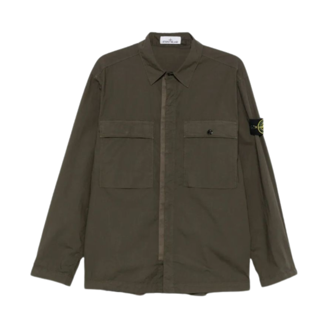 스톤 아일랜드 1200015 체스트 포켓 스냅 패스닝 스트레치 코튼 텔라 파라슈트 컴포트 핏 오버셔츠 밀리터리 그린 - 25SS