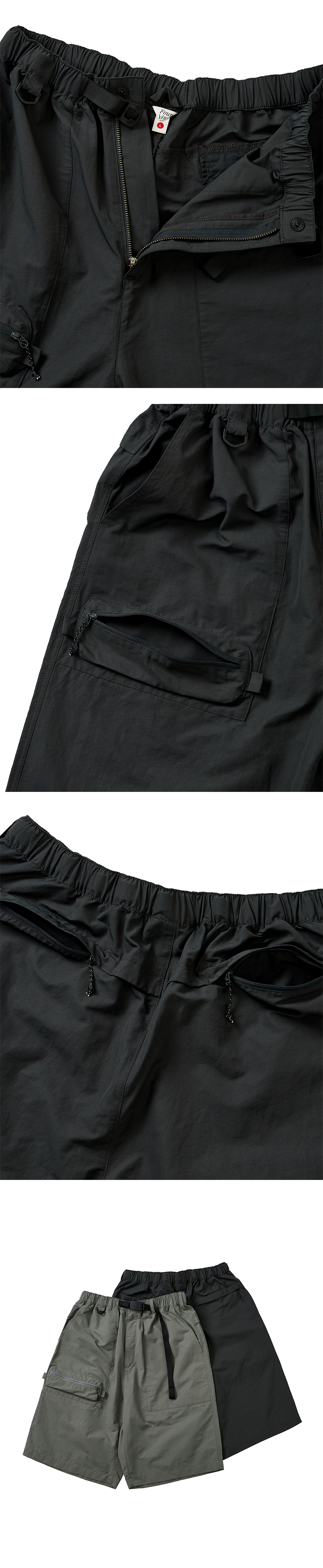 활동성을 고려하여 가볍고 통기성이 좋은 면, 나일론 혼방 소재 탄성 밴드와 웨빙, 버클로 벨트 없이 안정적인 착용감 제공 퍼티그 팬츠 스타일의 넉넉한 사이드 포켓과 지퍼 포켓 배치 다양한 도구를 걸 수 있는 D링 디테일 히든 지퍼형 뒤 포켓으로 소지품 이탈 방지와 깔끔한 착용