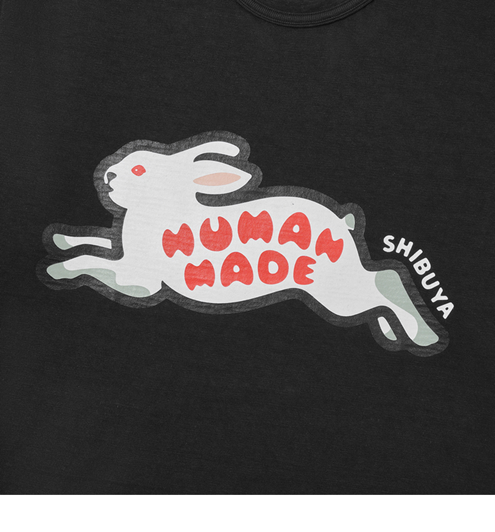 휴먼 메이드 애니멀 그래픽 티셔츠 래빗 블랙 - 시부야 파르코 스토어 한정