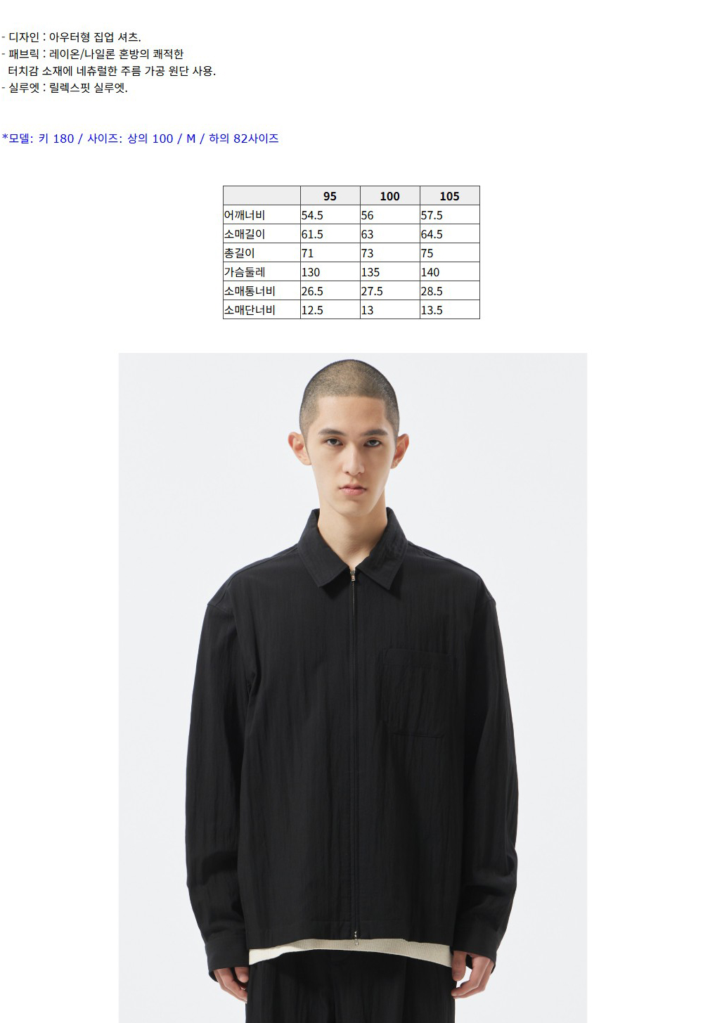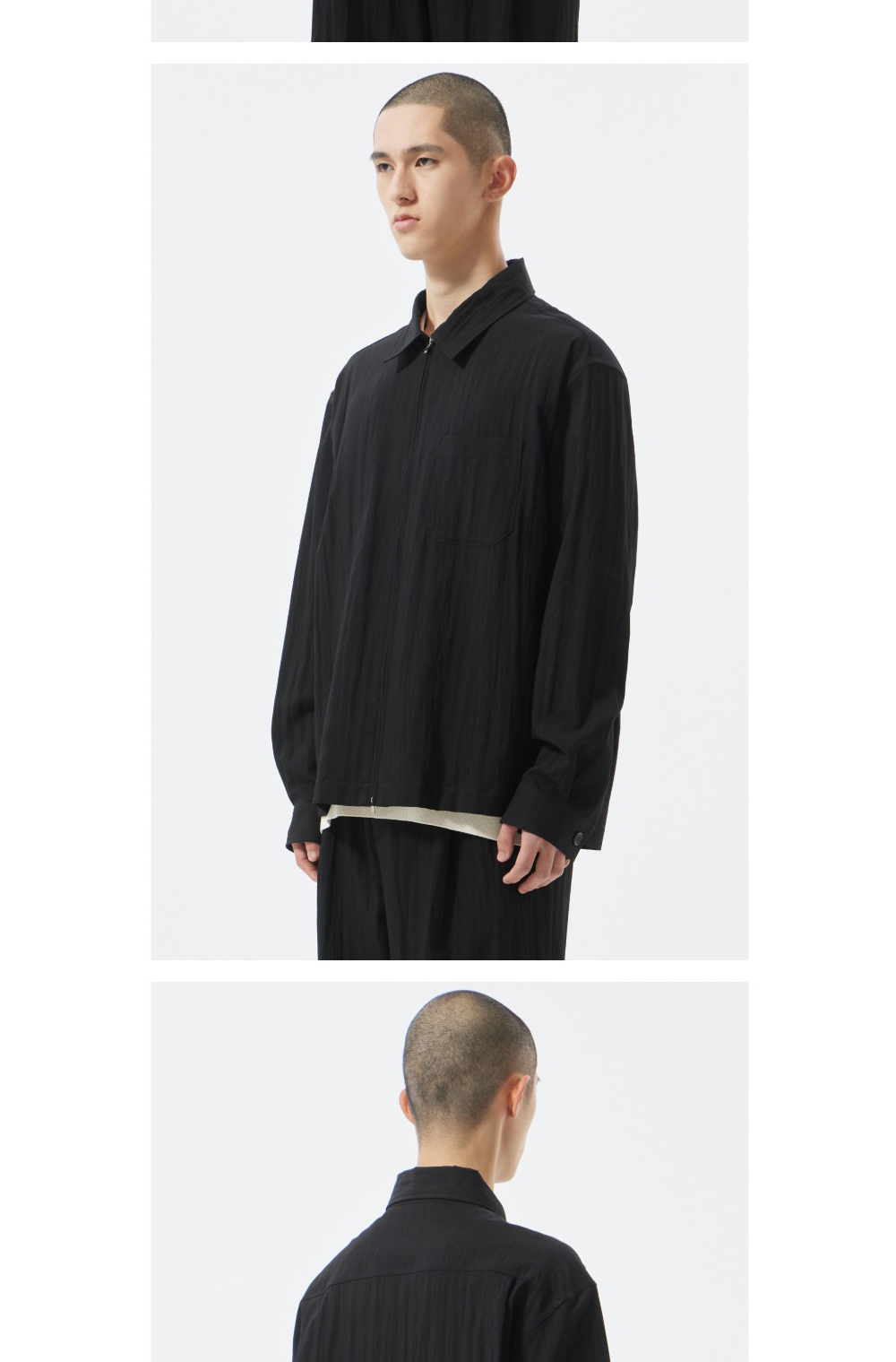 커스텀멜로우 솔리드 집업 셔츠 블랙