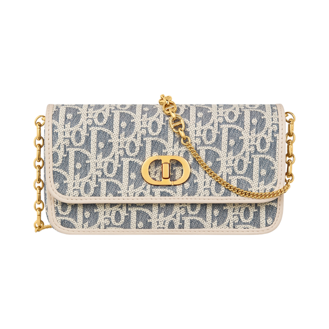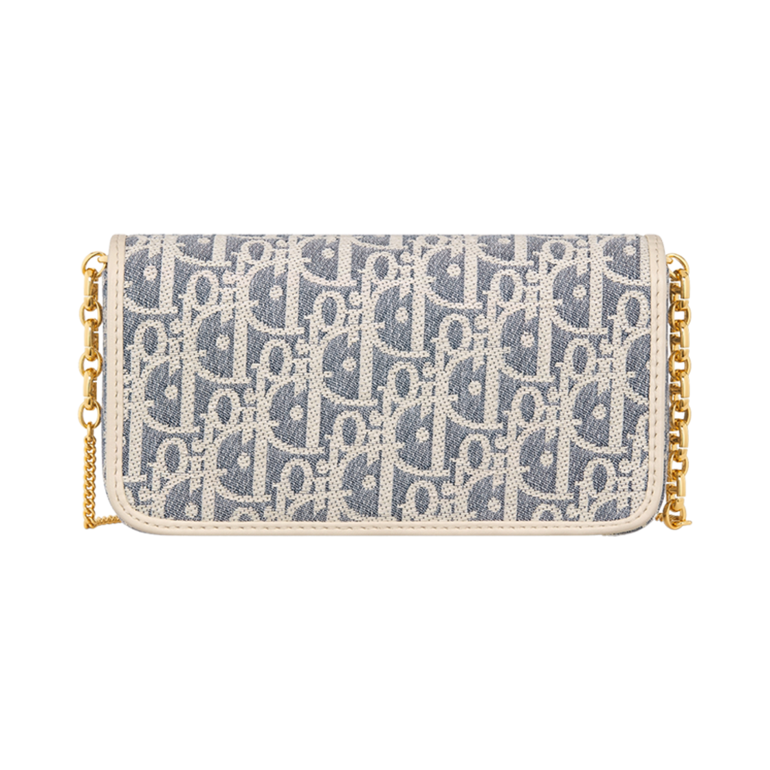 Dior Small Miss Caro Pouch with Chain Dior Oblique Chambray with Raffia Effect and Smooth Calfskin Light Biscuit White