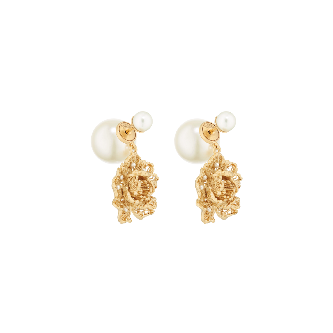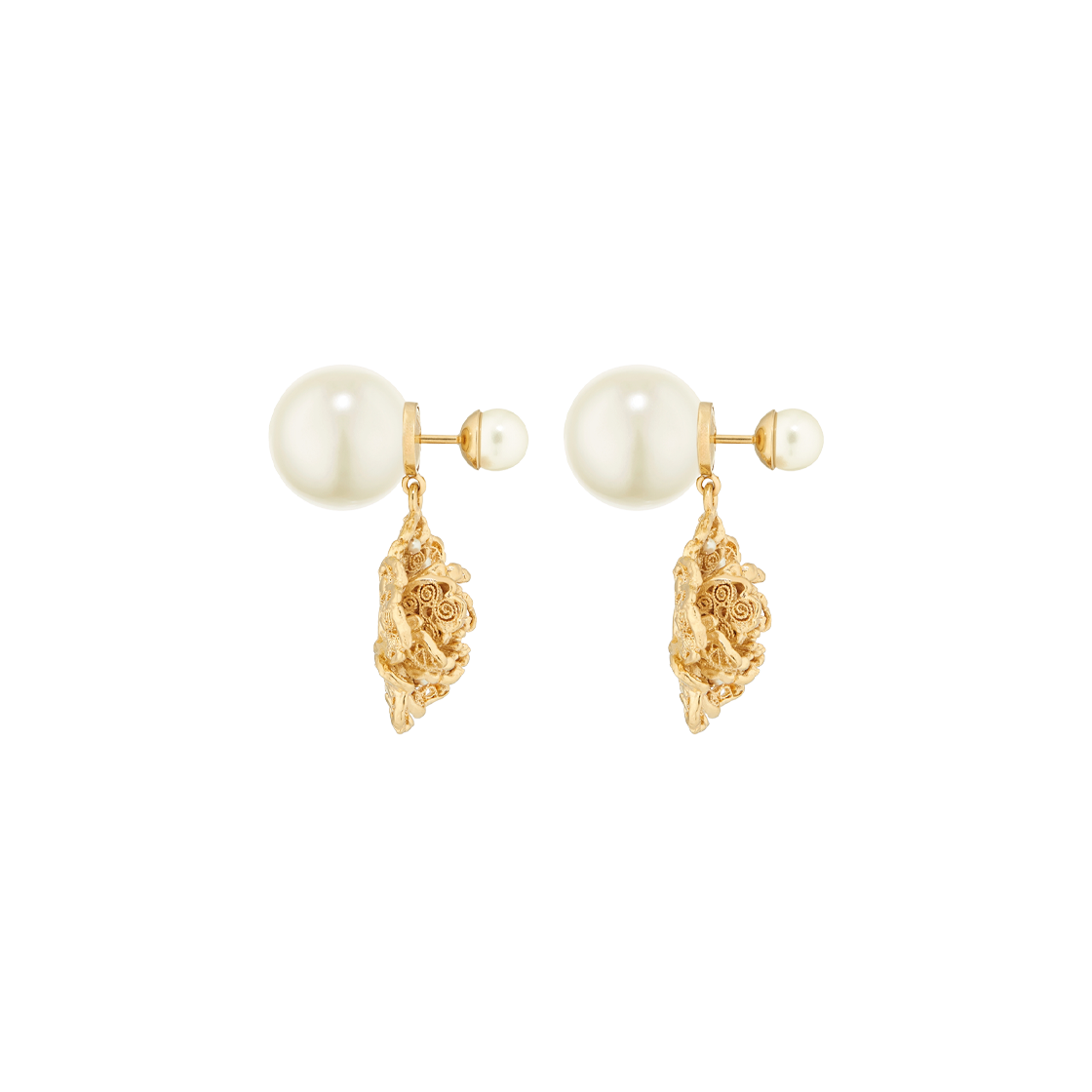 (W) Dior Tribales Earrings Gold-Finish Metal White Resin Pearls
