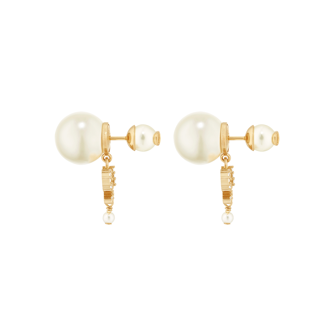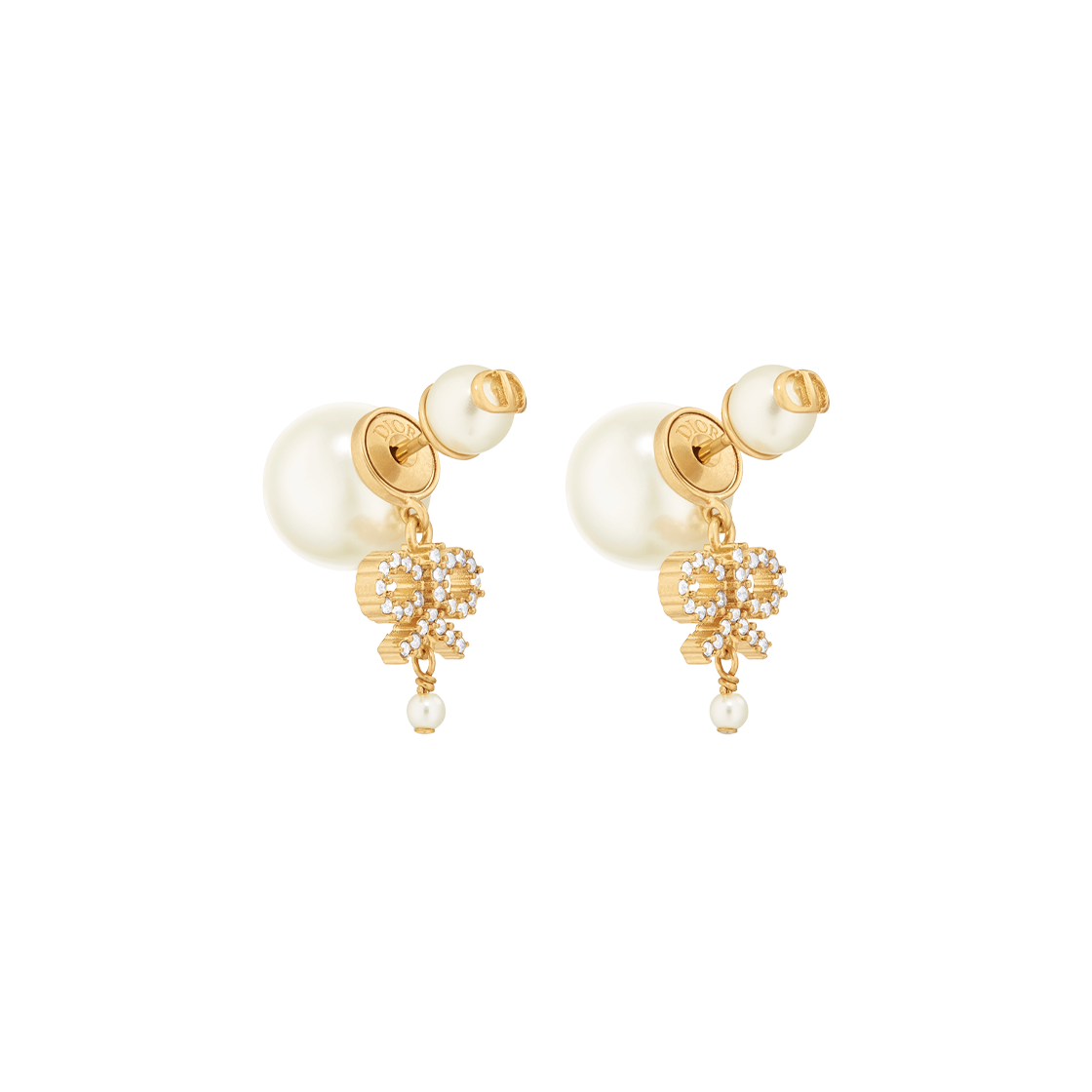 (W) Dior Tribales Earrings Gold Finish Metal White Resin Pearls Silver Tone Crystals