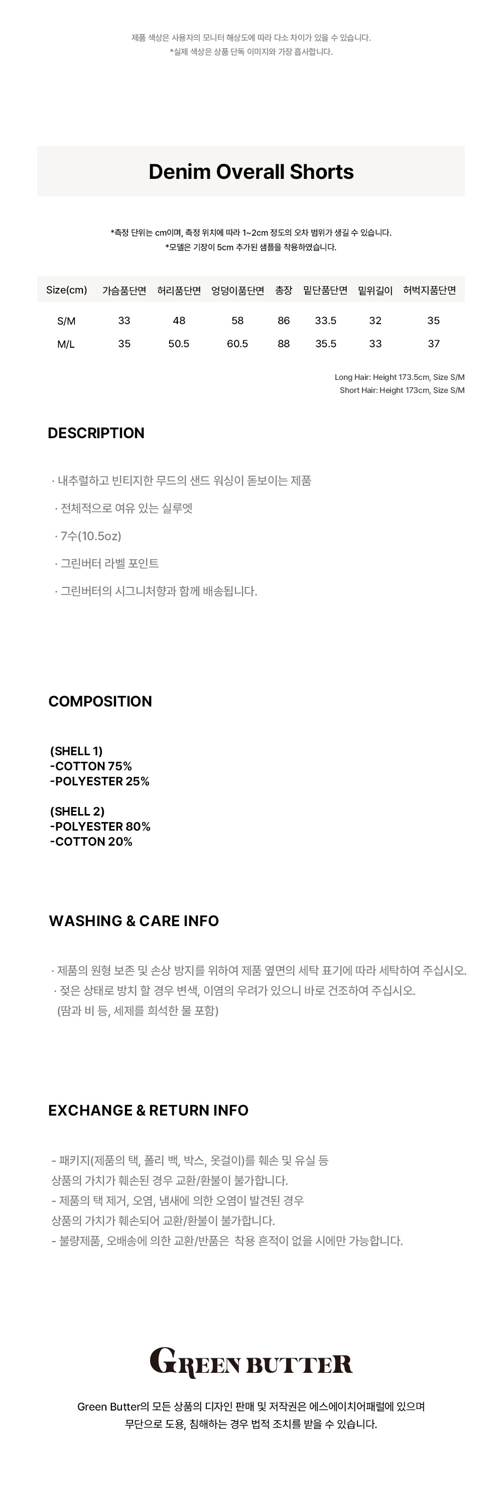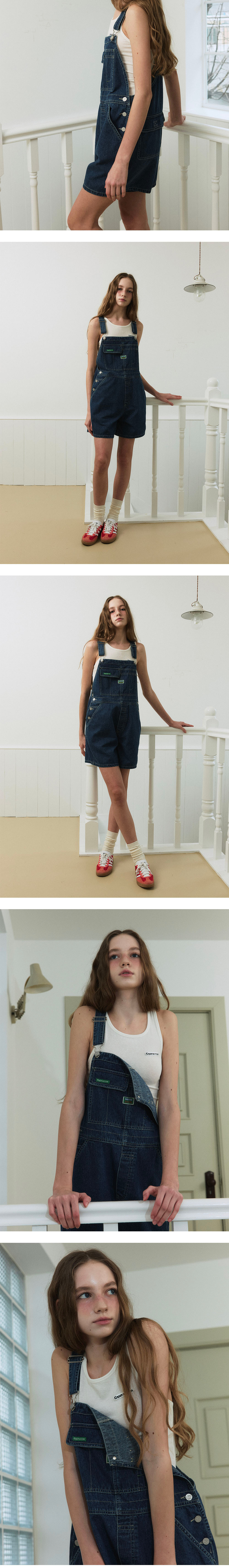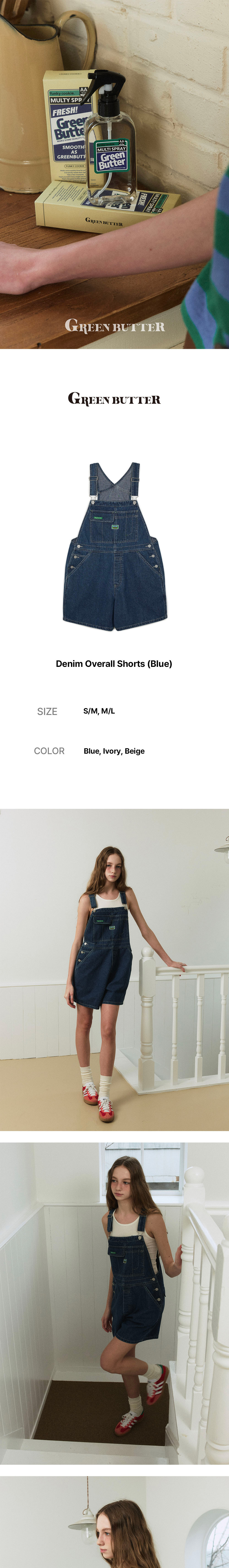 그린버터 데님 오버롤 쇼츠 블루