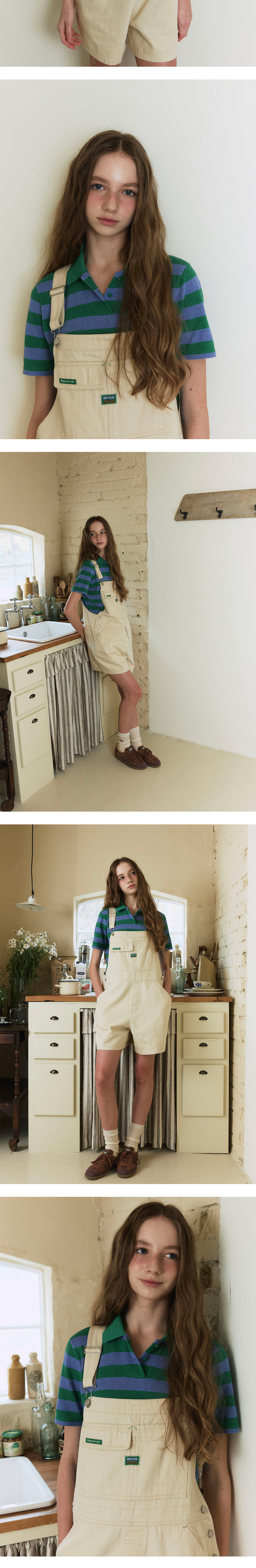 그린버터 데님 오버롤 쇼츠 베이지