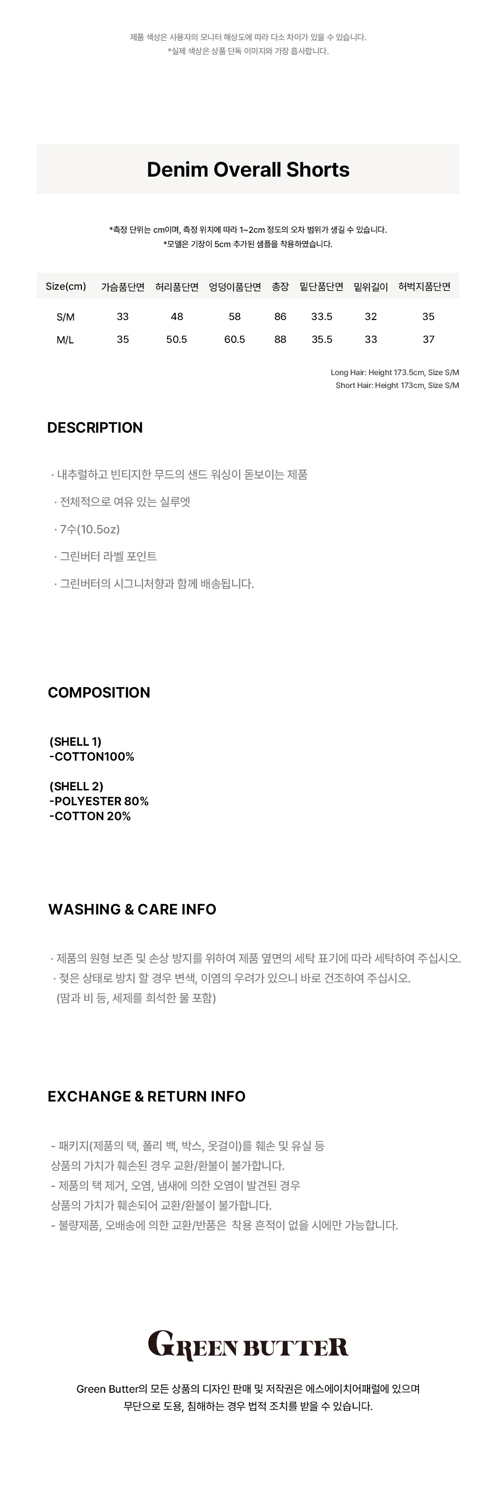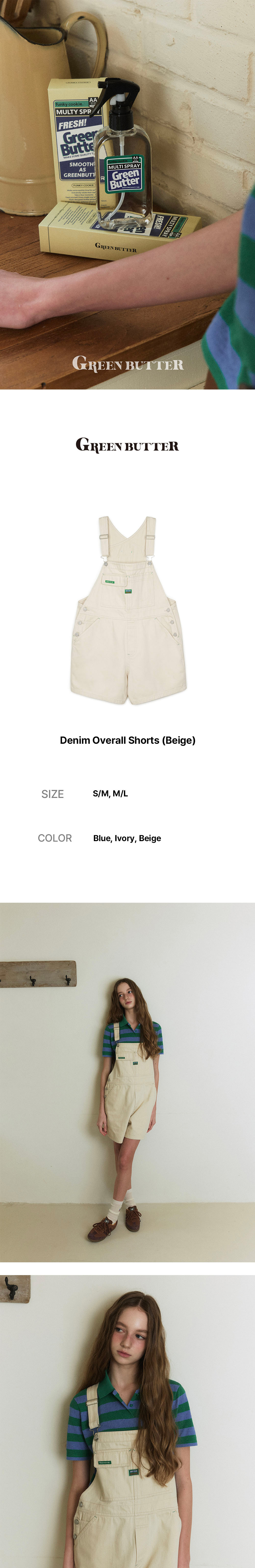 그린버터 데님 오버롤 쇼츠 베이지