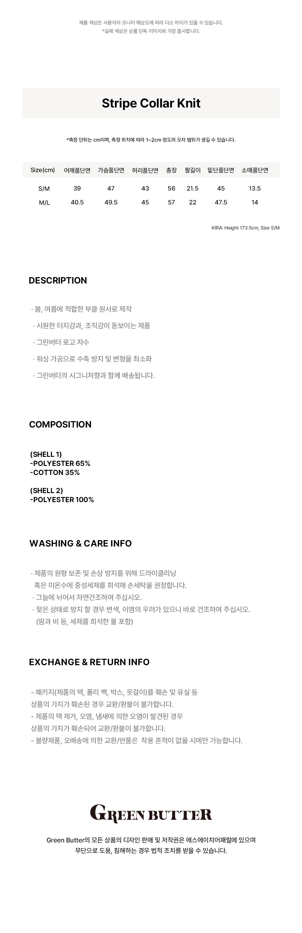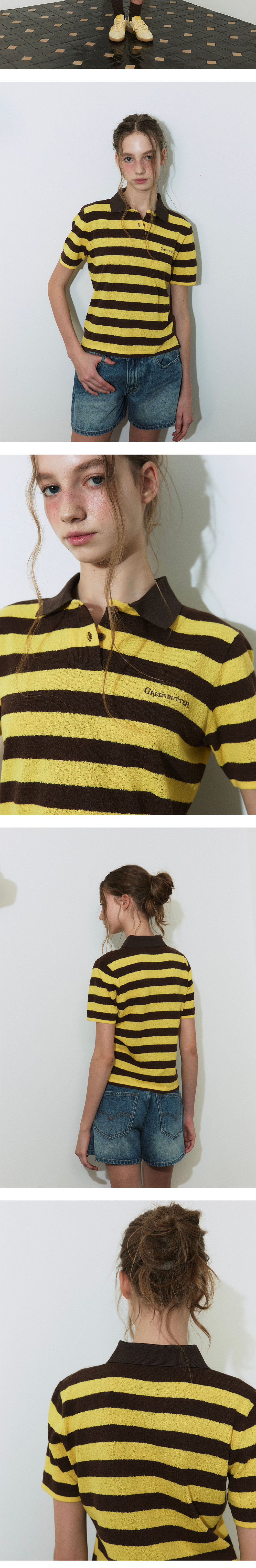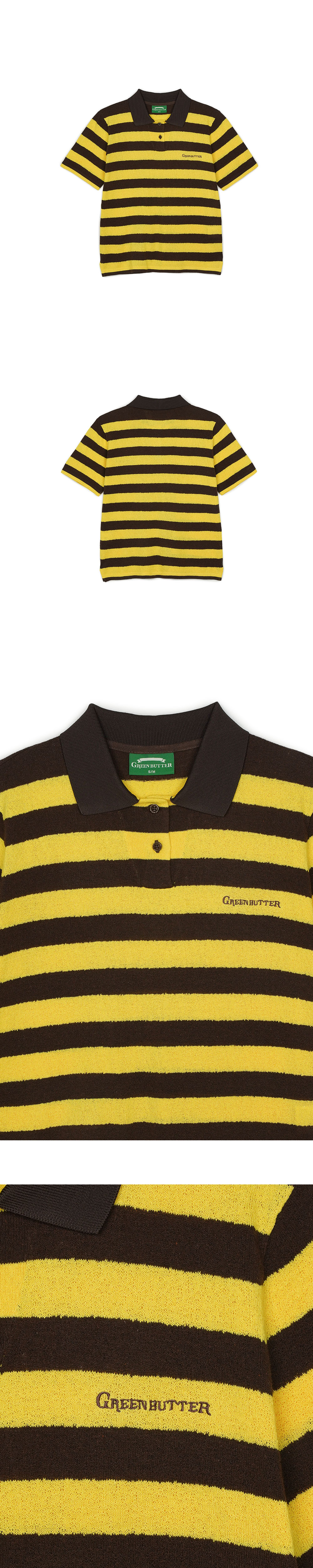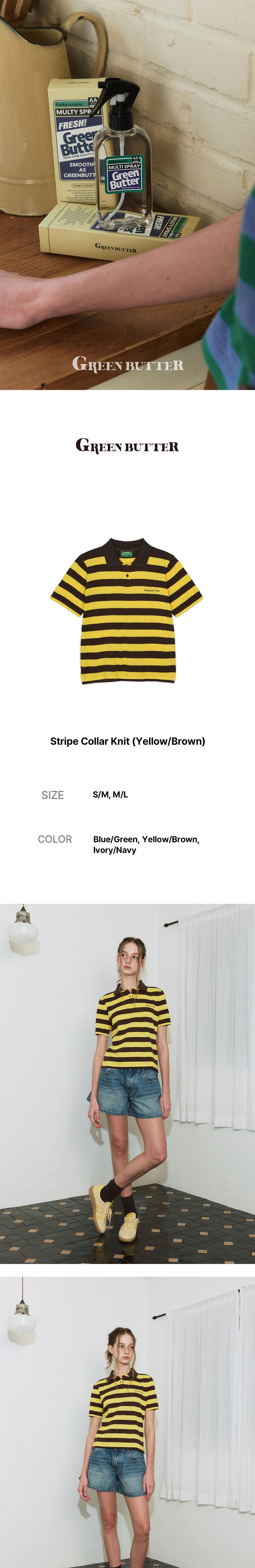 그린버터 스트라이프 칼라 니트 옐로우/브라운