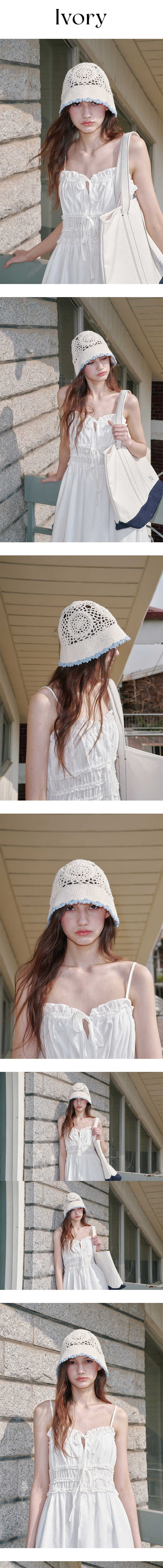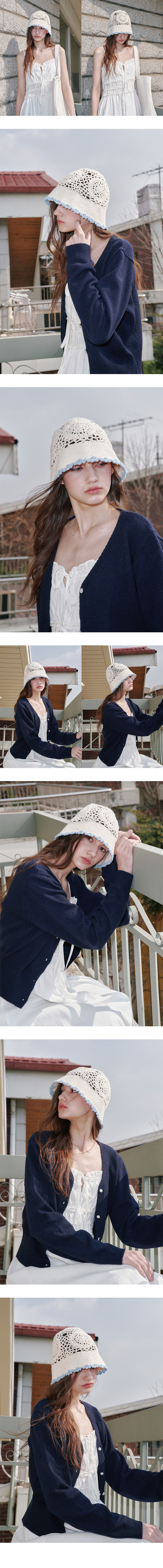 올인컴플리트 썬플라워 쉘 크로셰햇 아이보리
