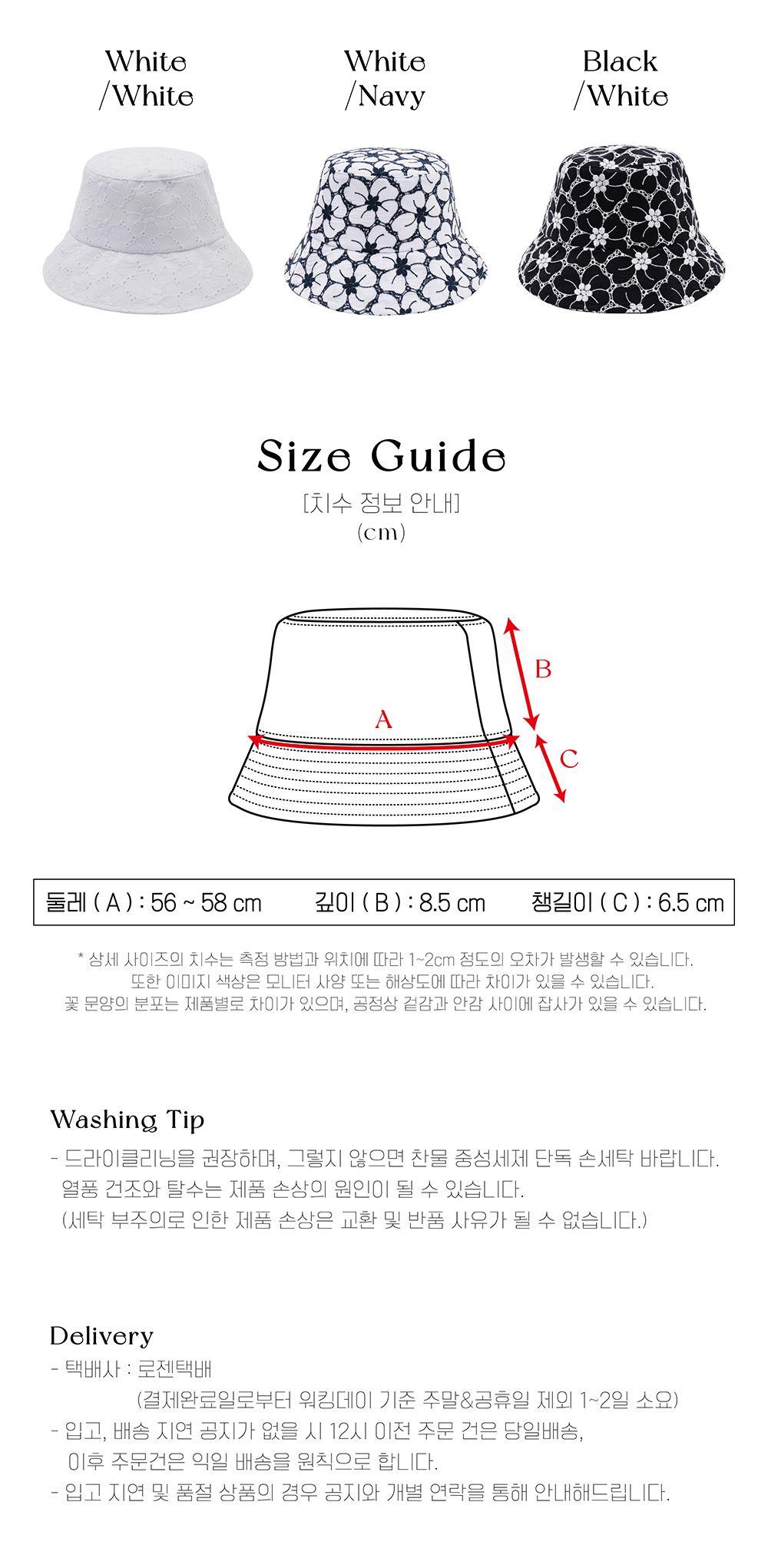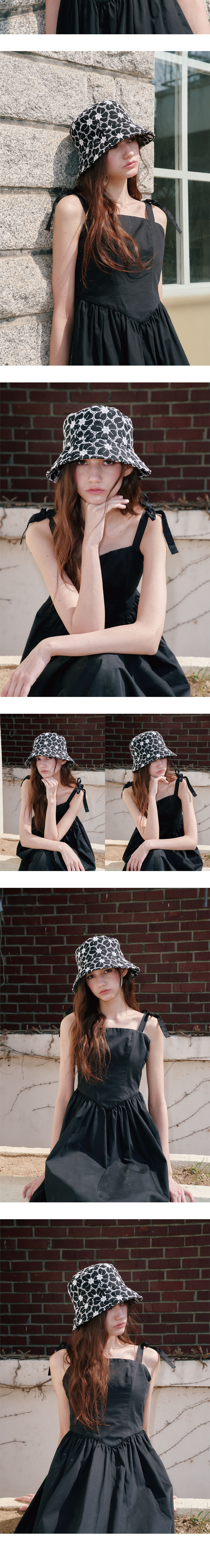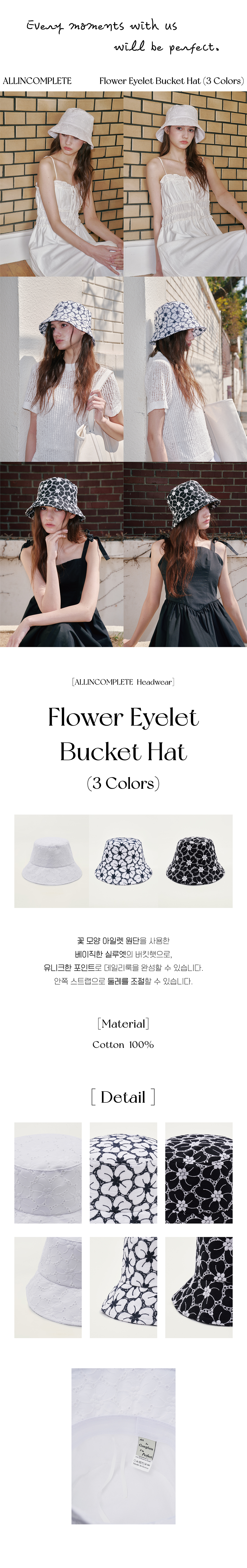 올인컴플리트 플로워 아일렛 버킷햇 블랙-화이트