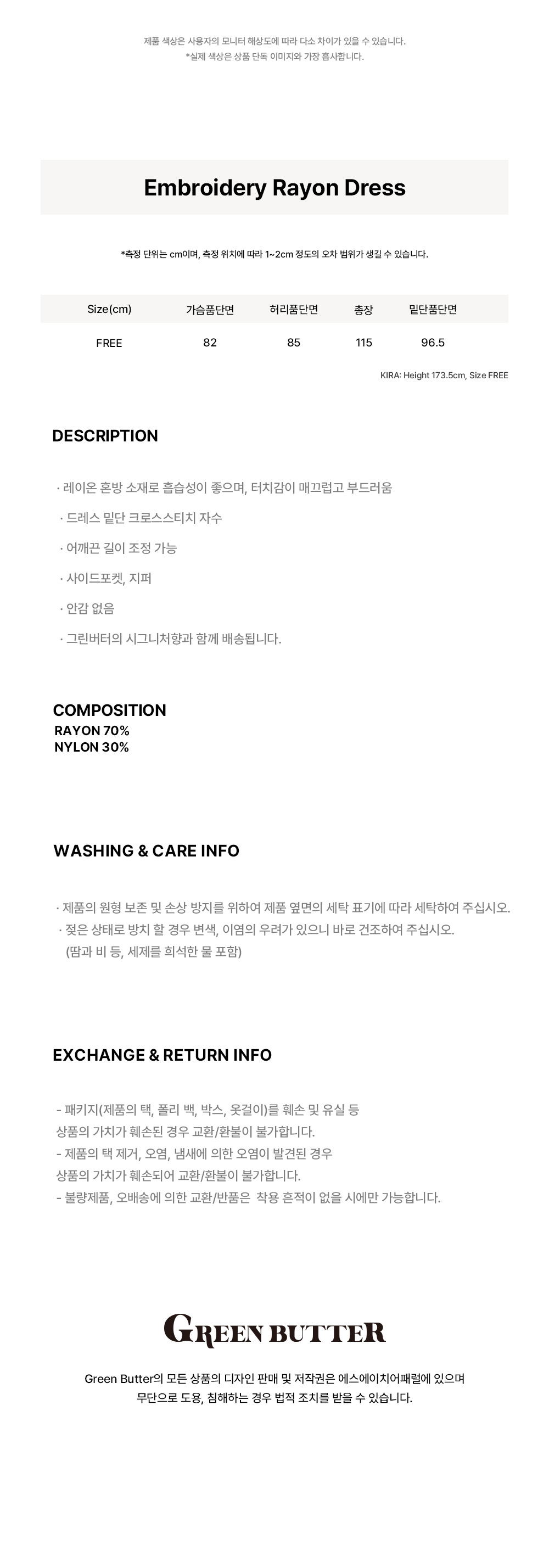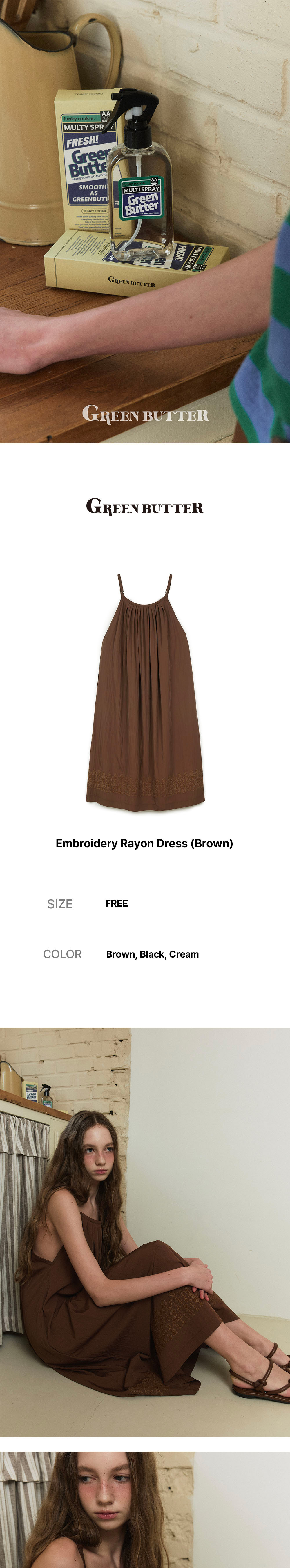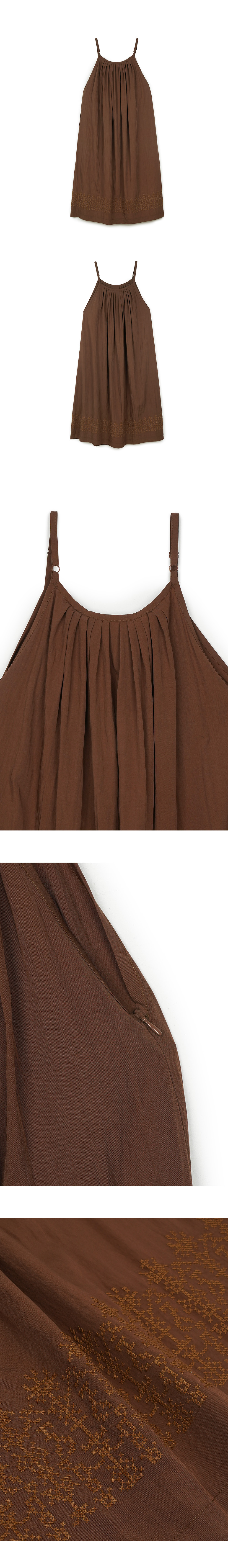 그린버터 엠보로이더리 레이온 드레스 브라운