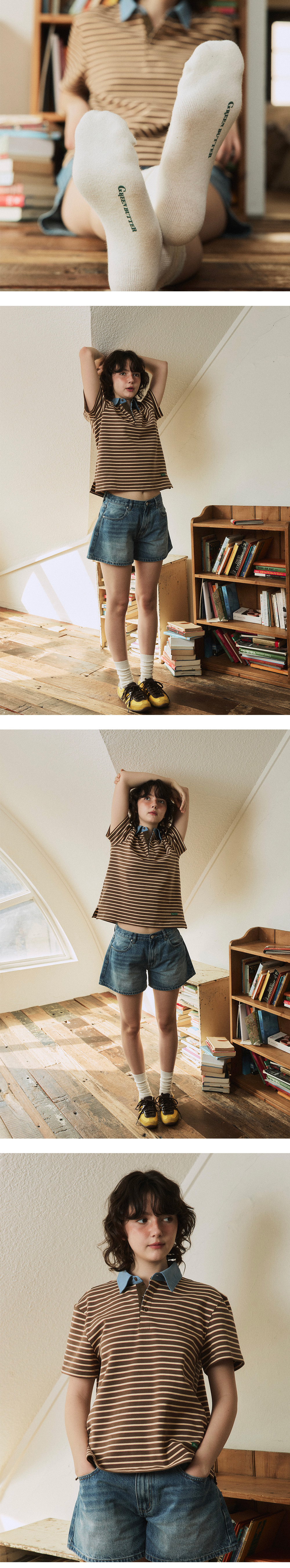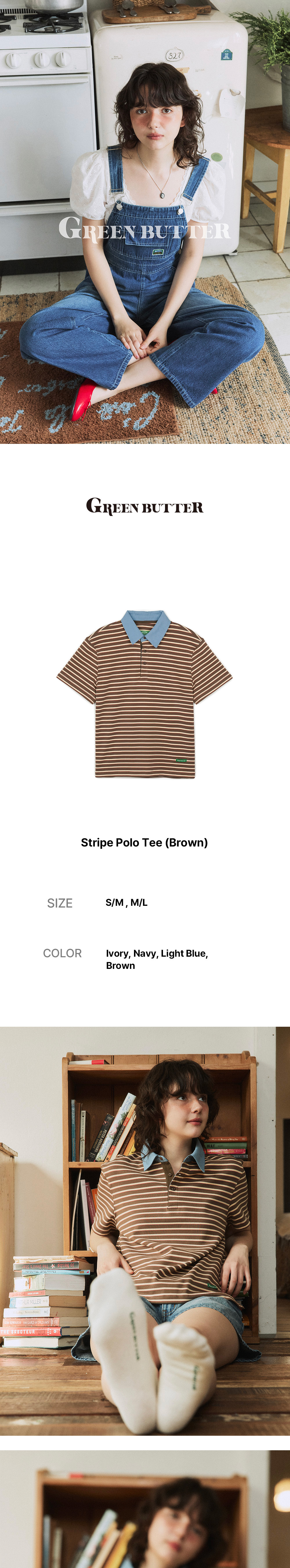 그린버터 스트라이프 폴로 티 브라운