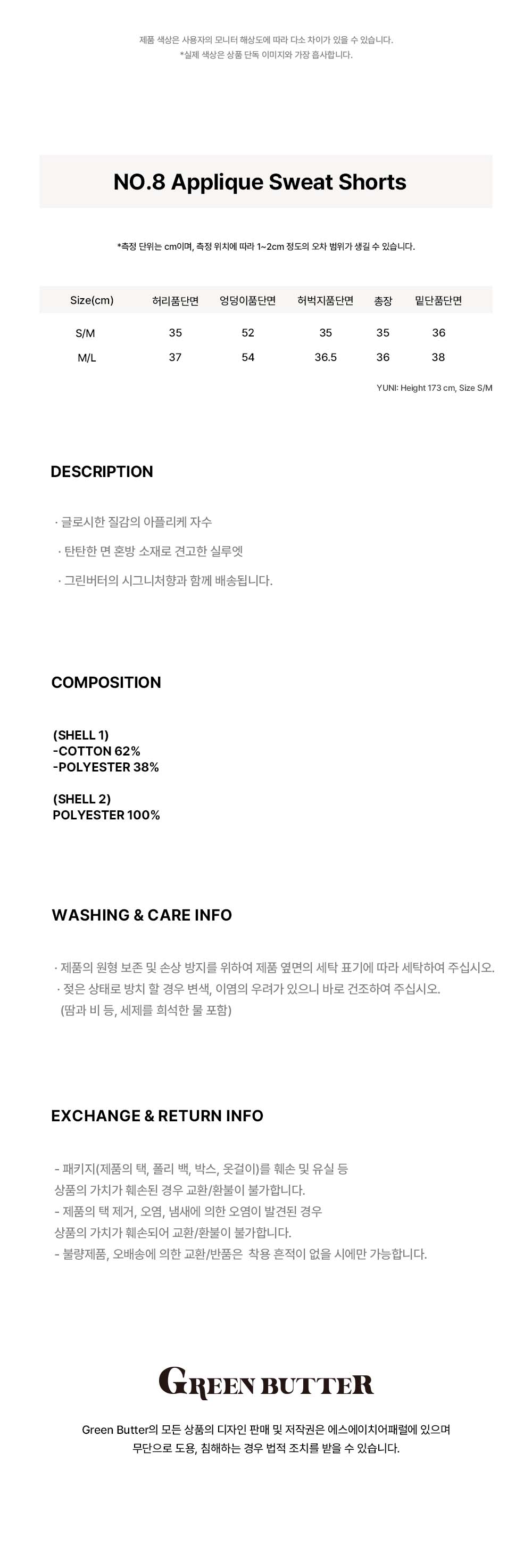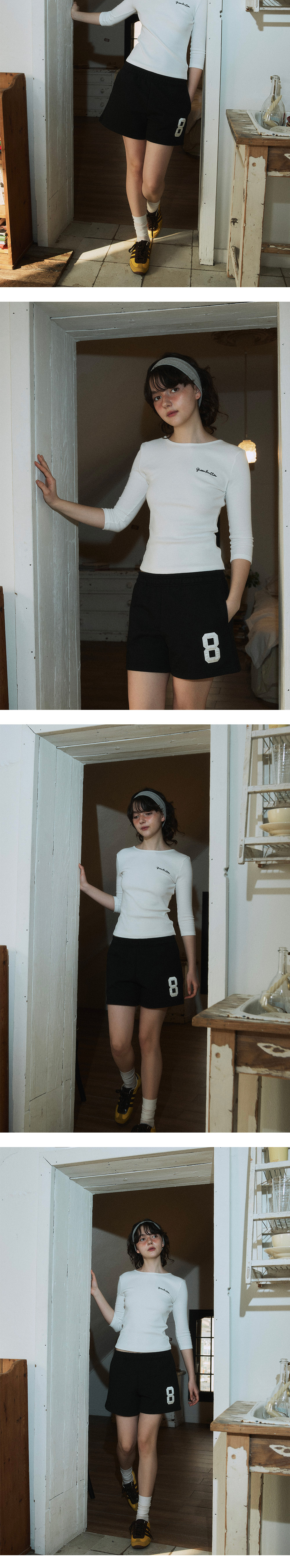 그린버터 넘버에잇 아플리케 스웻 쇼츠 블랙
