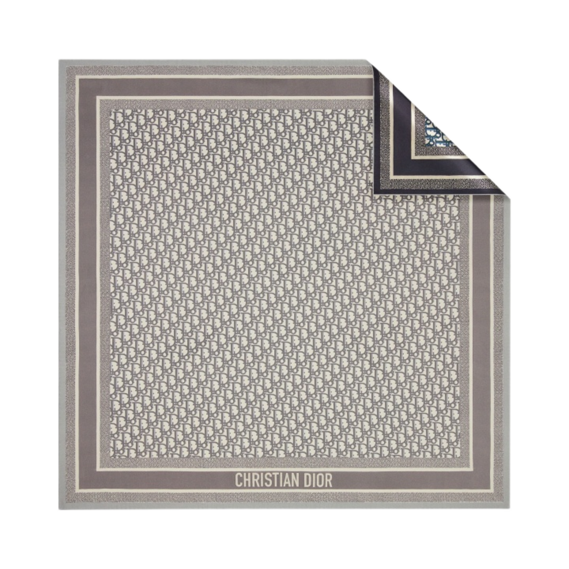 Dior Oblique Diortwin Square Scarf Silk Twill Grey Navy Blue