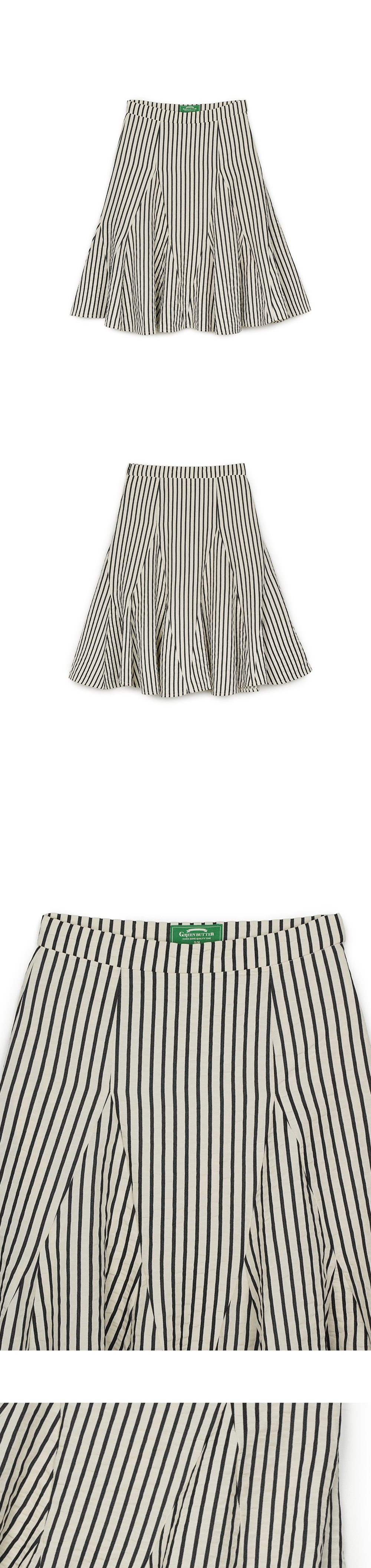 그린버터 플레어 스트라이프 스커트 블랙