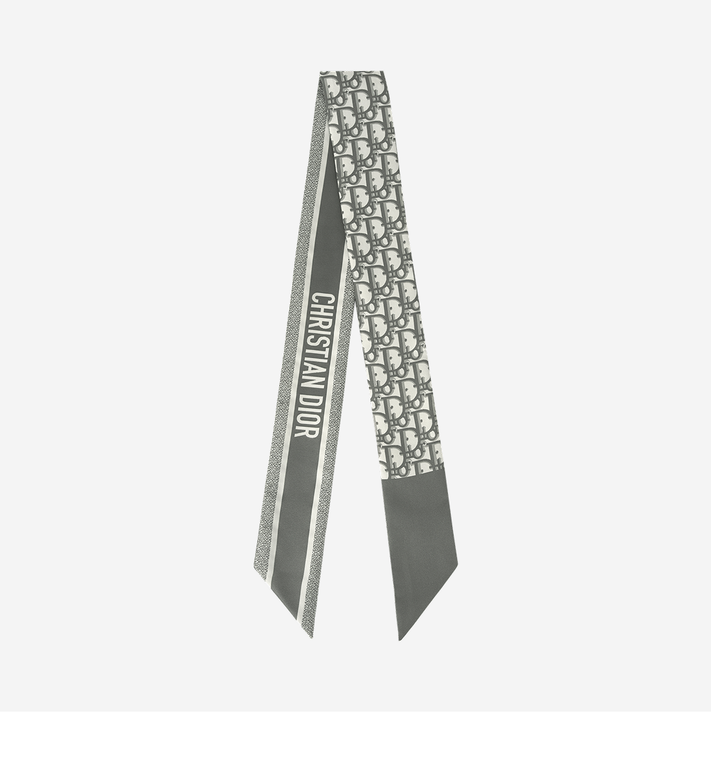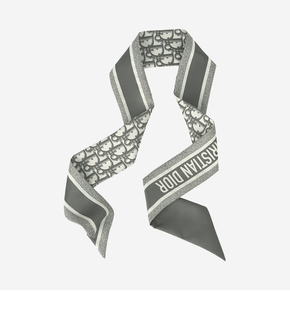 (W) Dior Oblique Mitzah Scarf Silk Twill Grey