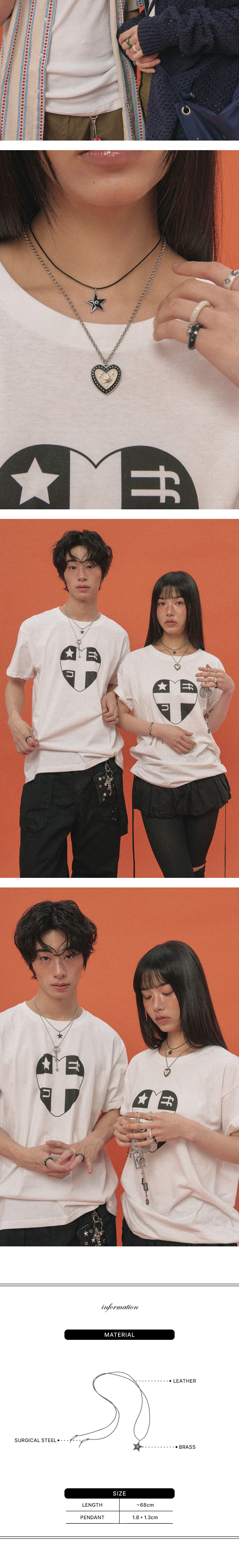 가죽끈으로 제작된 목걸이로 짧은 초커 또는 방향을 조절하여 타이 스타일로 착용도 가능한 제품입니다.