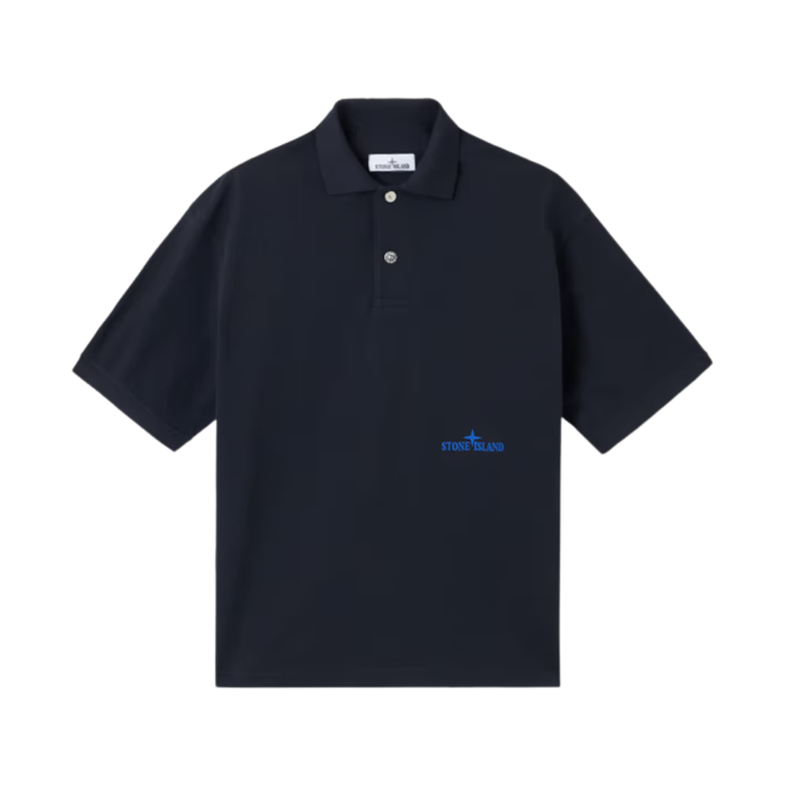 스톤 아일랜드 2200002 50/2 로고 자수 오가닉 코튼 피케 숏슬리브 폴로 셔츠 네이비 블루 - 25SS