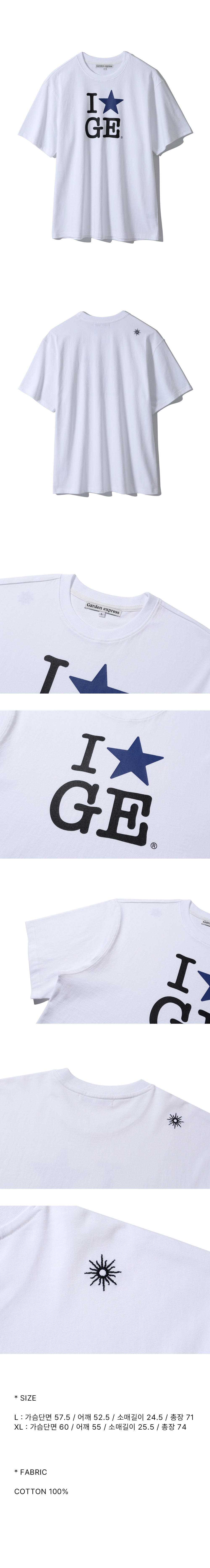 - I ★ GE 그래픽이 프린팅된 반팔 티셔츠입니다. - 고밀도로 짜인 16수 코마사 싱글 원단을 사용해 탄탄한 착용감을 느낄 수 있으며, 바이오 워싱 가공으로 세탁 후에도 수축과 변형이 적습니다. - 트렌디한 그래픽으로 단품으로도 이너로도 룩에 포인트를 더해줍니다. - 뒷면 어깨에는 심볼 자수로 디테일을 살렸습니다.