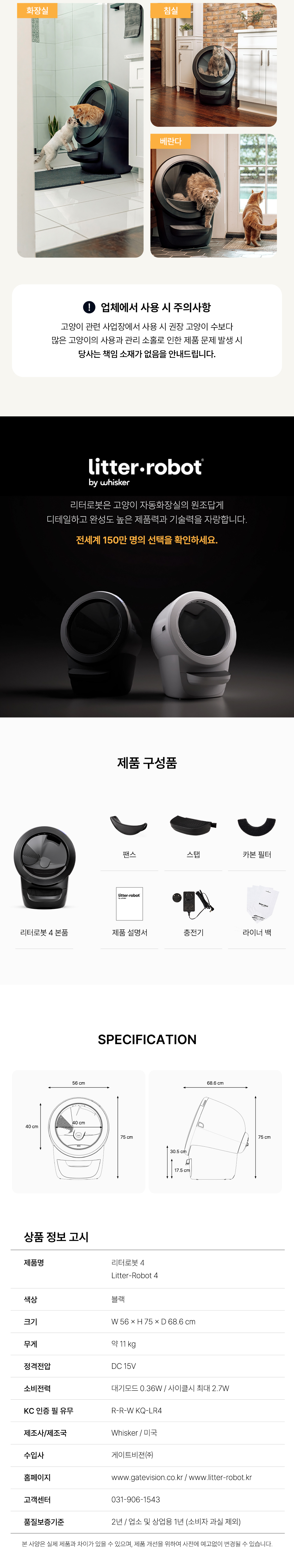리터로봇 4 고양이 자동 화장실 블랙