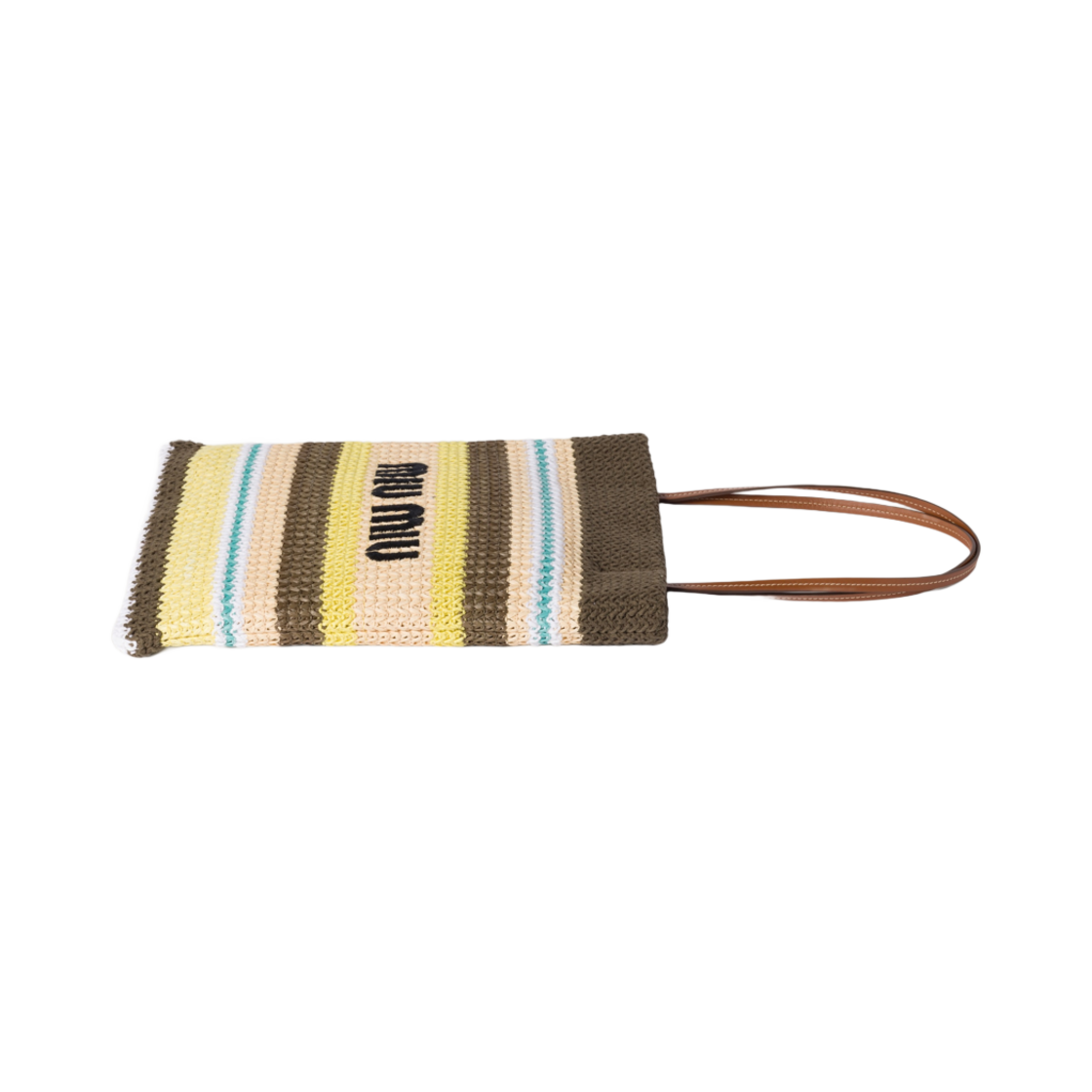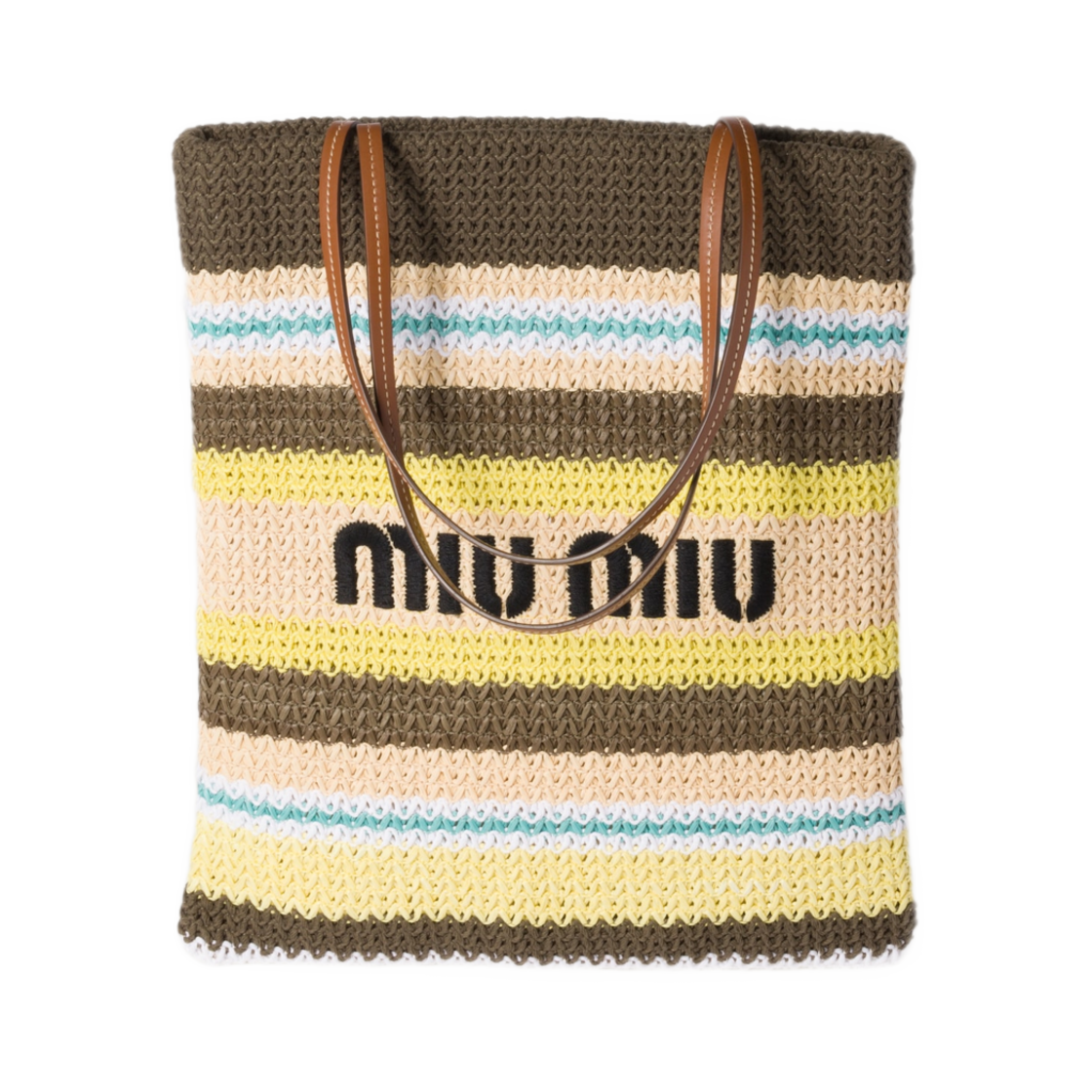 미우 미우 라피아 이펙트 우븐 토트백 툰드라 레몬 옐로우 내츄럴
