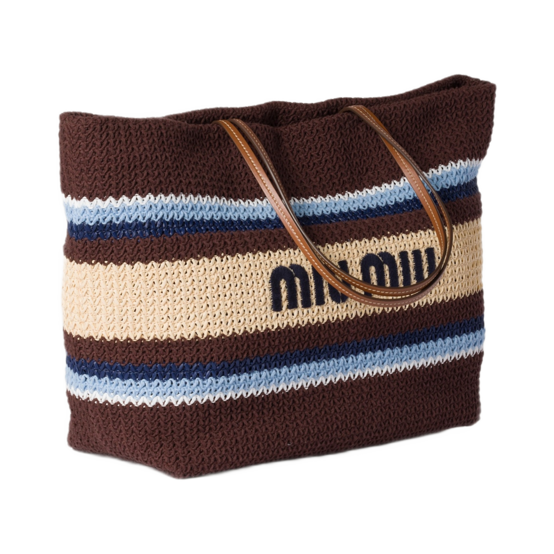 미우 미우 라피아 이펙트 우븐 토트백 코코아 브라운 셀레스트 내츄럴