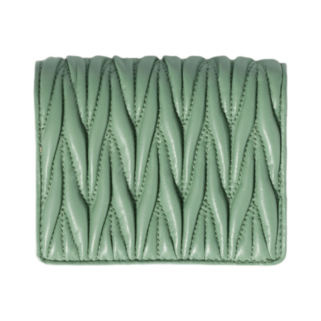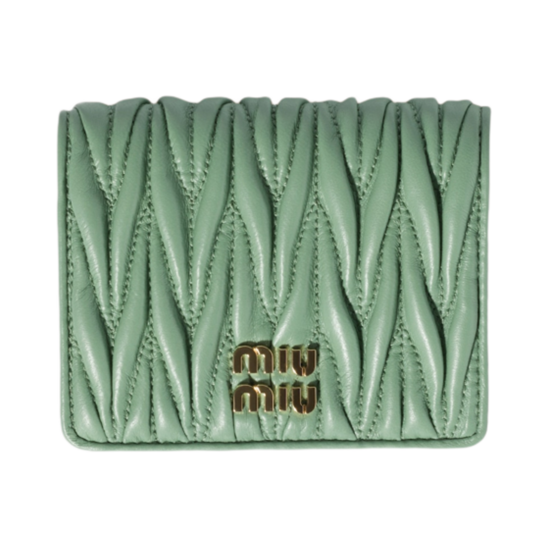 Miu Miu Matelasse Nappa Leather Card Holder Aquamarine