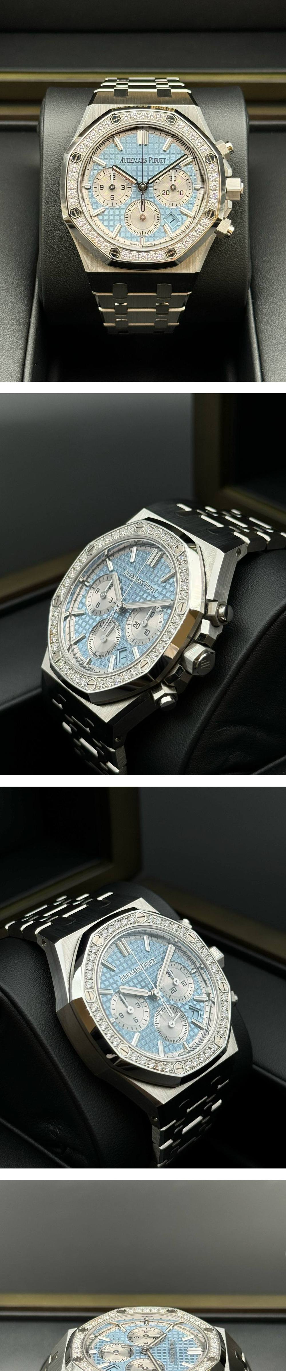 Audemars Piguet Royal Oak Chronograph 38-26715ST Bezel Diamond Light Blue Baton