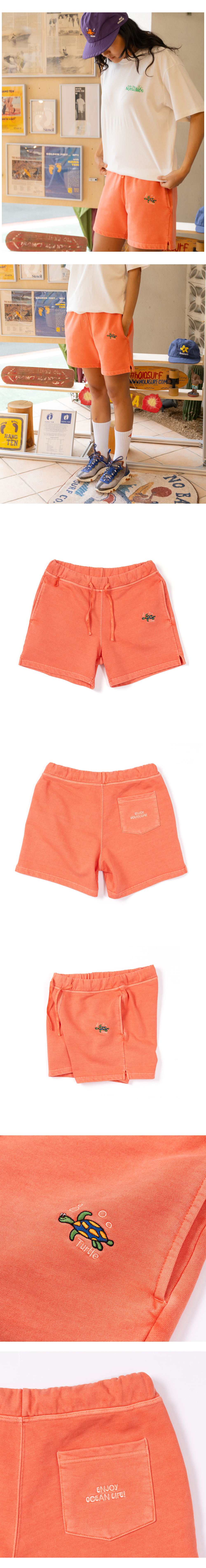 빅웨이브 컬렉티브 피그먼트 다이드 코랄 반바지 (코랄 오렌지)