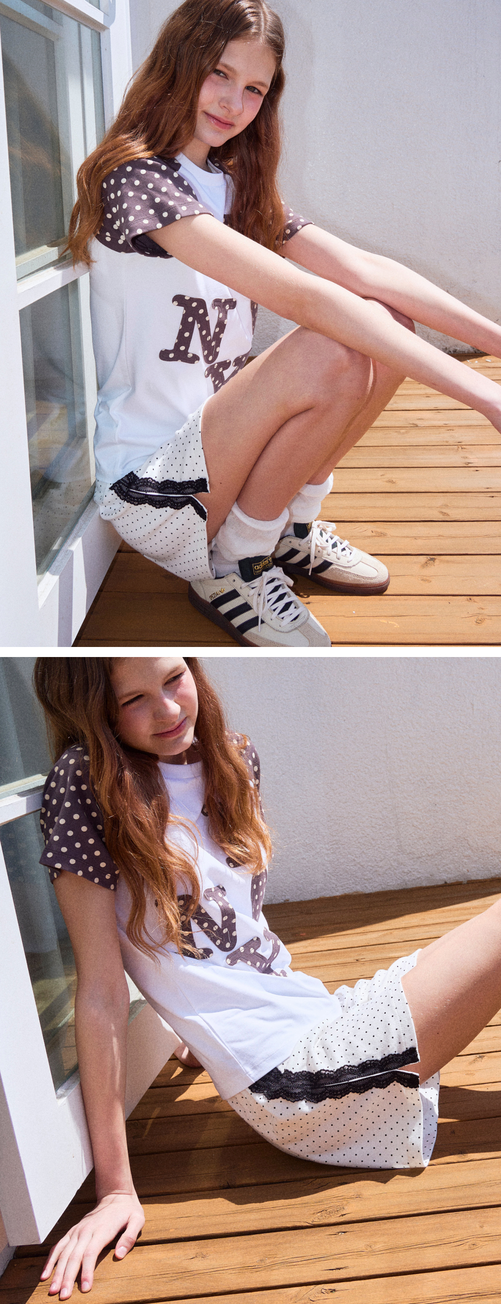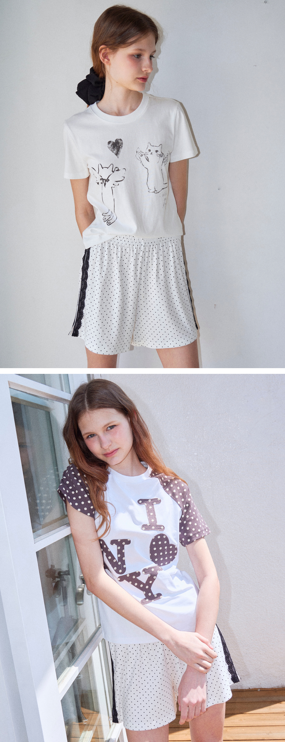 로긴 앤 로지 도트 디테일드 사이드 레이스 쇼츠 화이트