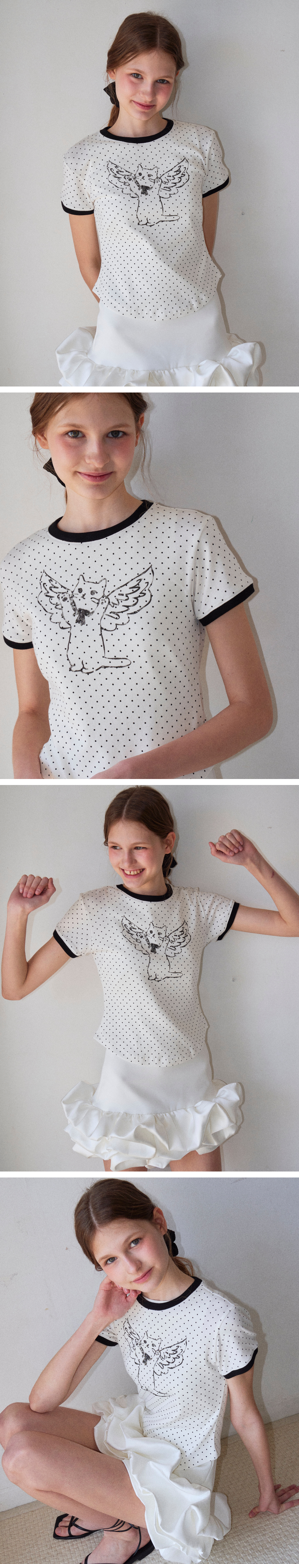 Rogin N Rosie Angel Cat Dot Ringer T-shirt White