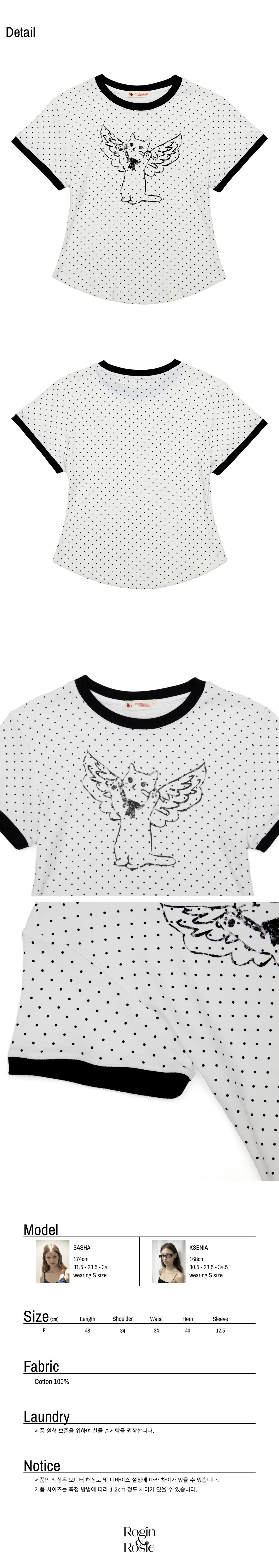 로긴 앤 로지 엔젤 캣 도트 링거 티셔츠 화이트