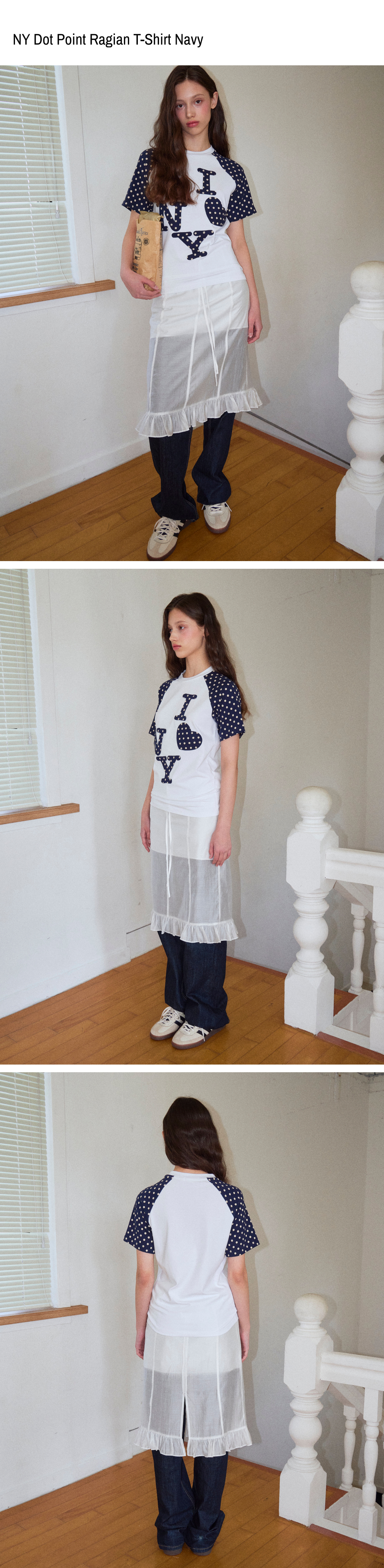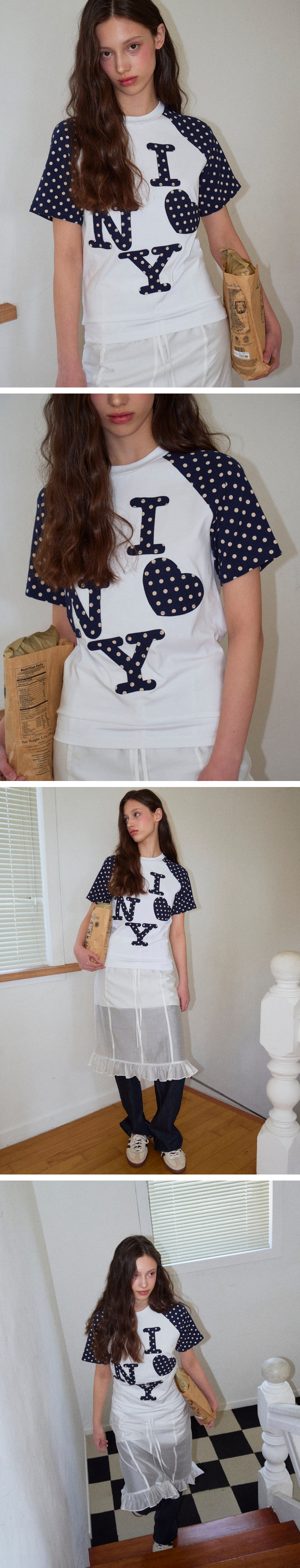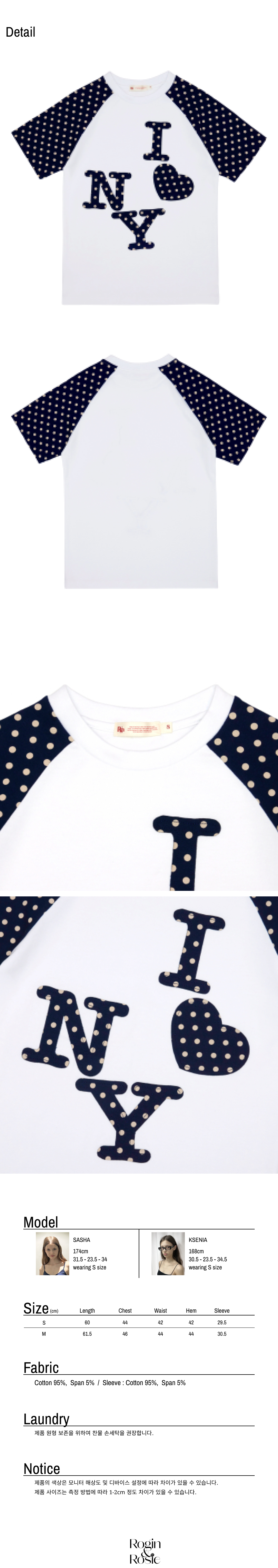 로긴 앤 로지 엔와이 도트 포인트 나그랑 티셔츠 네이비