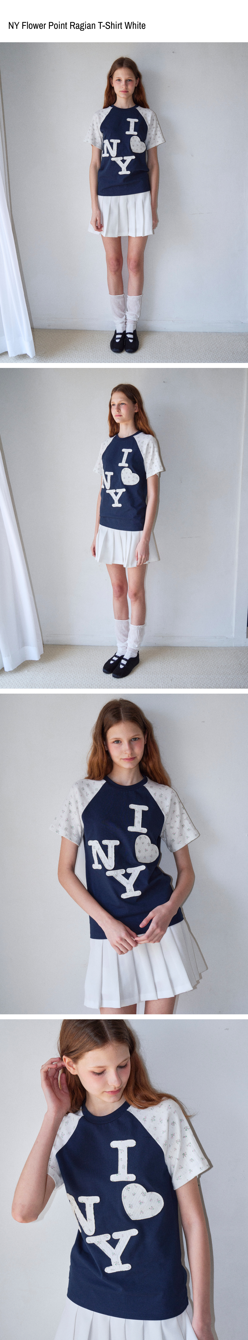 Rogin N Rosie NY Flower Point Ragian T-Shirt White