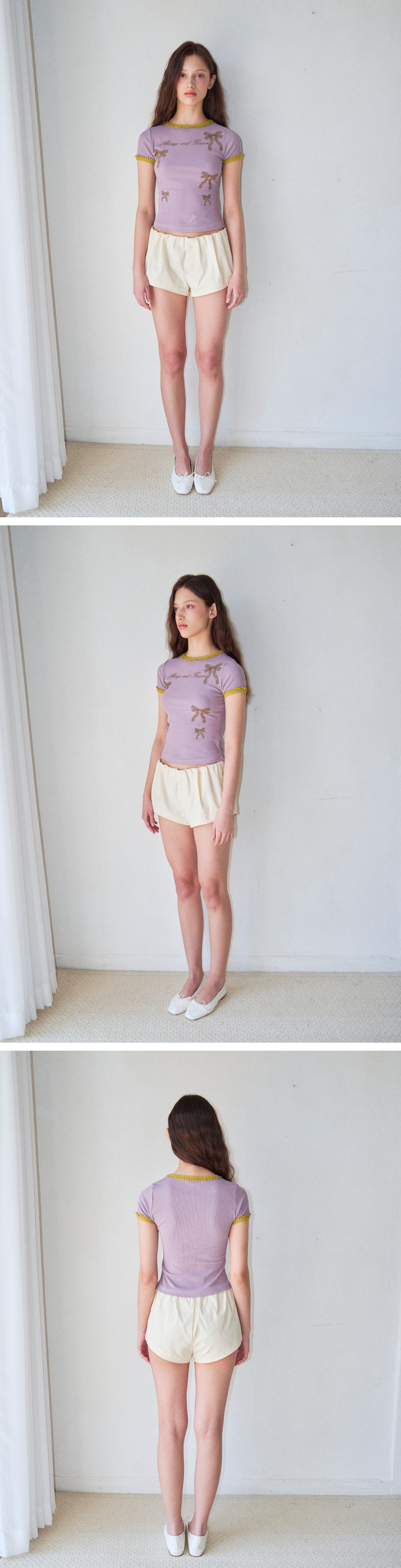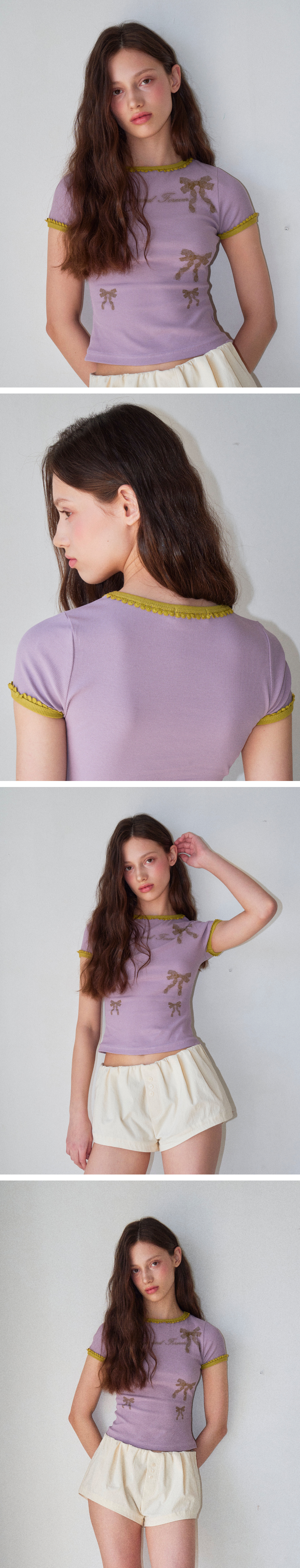 Rogin N Rosie Ribbon Printed Slim Ringer T-shirt Purple
