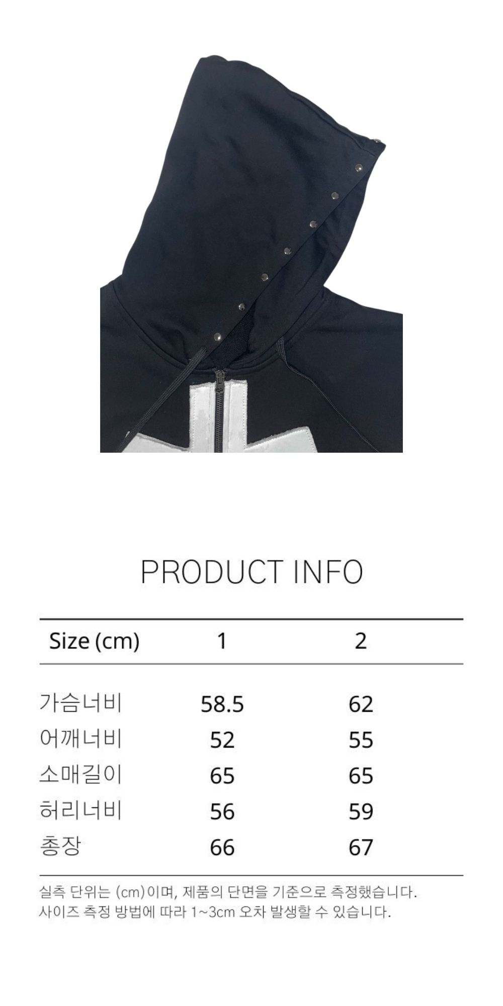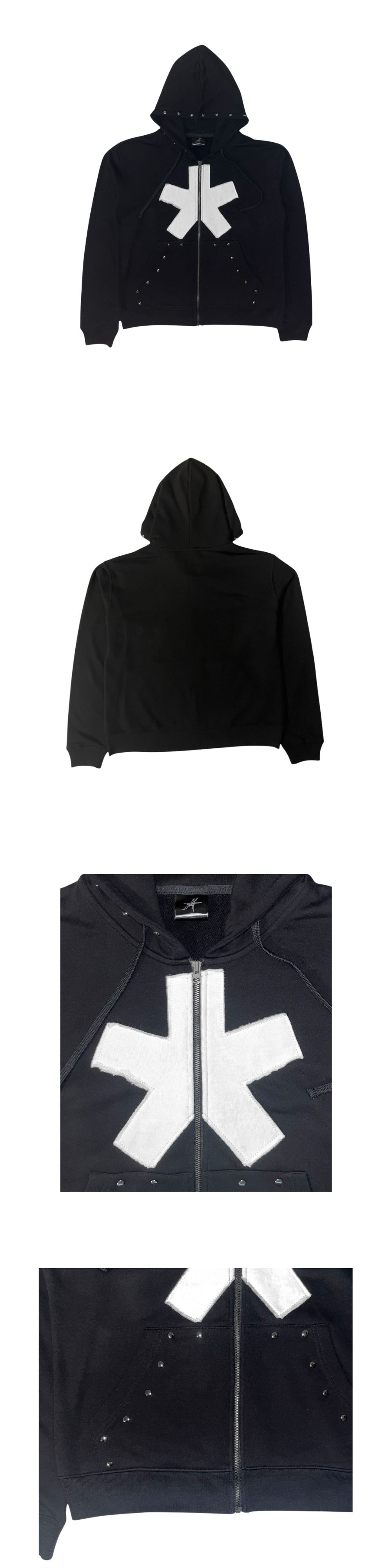 -주머니와 후드 주변에 있는 약 30개의 스터드 징 디테일