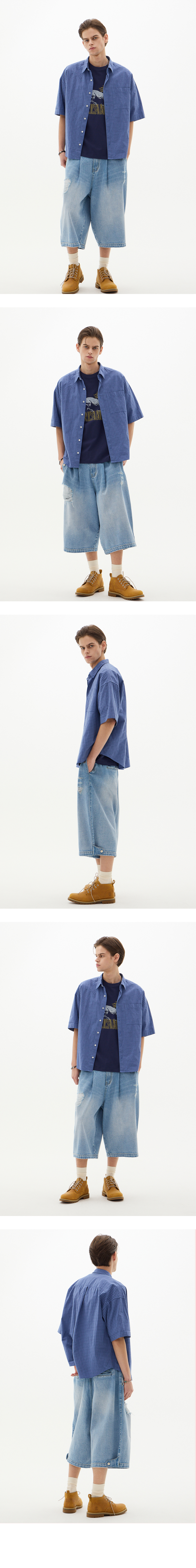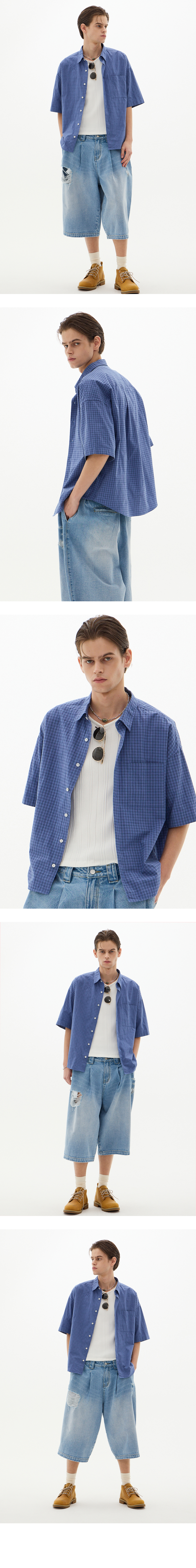 일본 쿠와무라社의 면 포플린 핀 체크 셔츠 컴팩트사와, 내추럴사 두가지를 베이스로 하여 독특한 텍스처 표현 오가닉한 원단감에 오버사이즈핏으로 자연스러운 분위기 연출 컬러 : 블루 원단 : 일본 쿠와무라社 면 100% 자개단추 입체적인 텍스처의 원단감 오버사이즈핏 톤다운된 블루컬러의 내추럴한 컬러감 봄, 여름, 가을에 적합한 두께 - MODEL SIZE : 187cm / 65kg / L SIZE - 측정 기준에 따라 1~2cm의 오차 범위가 발생할 수 있습니다.