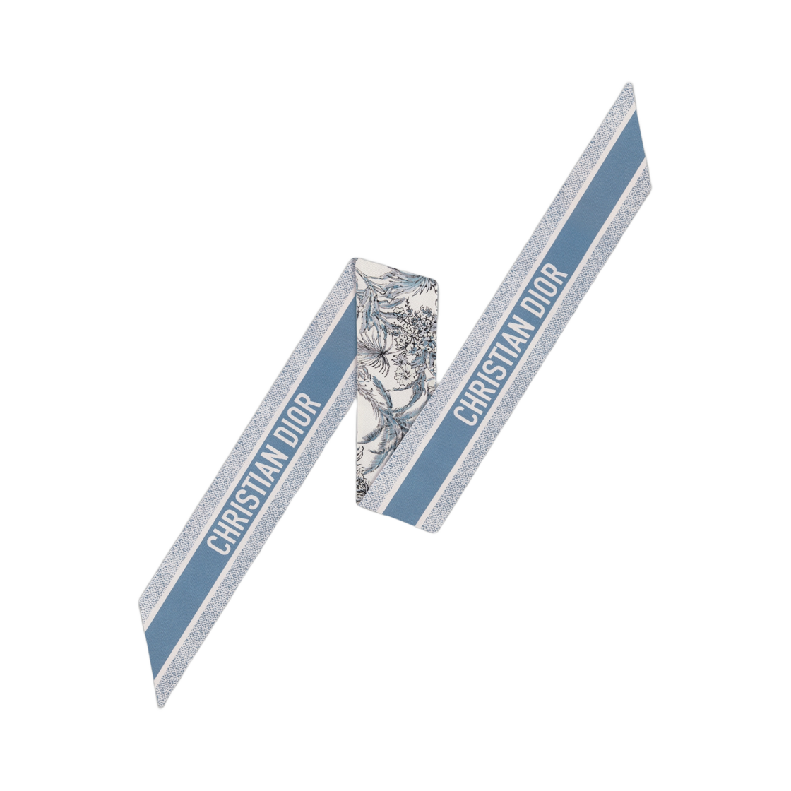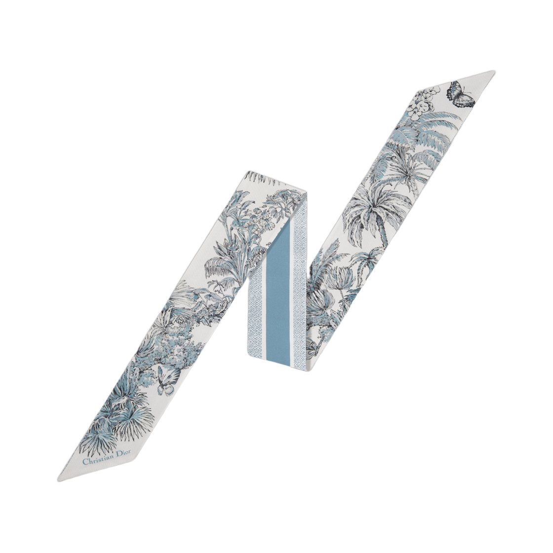 (W) 디올 디올리비에라 트왈 드 주이 팜 미차 스카프 실크 트윌 셀레스티얼 블루 화이트