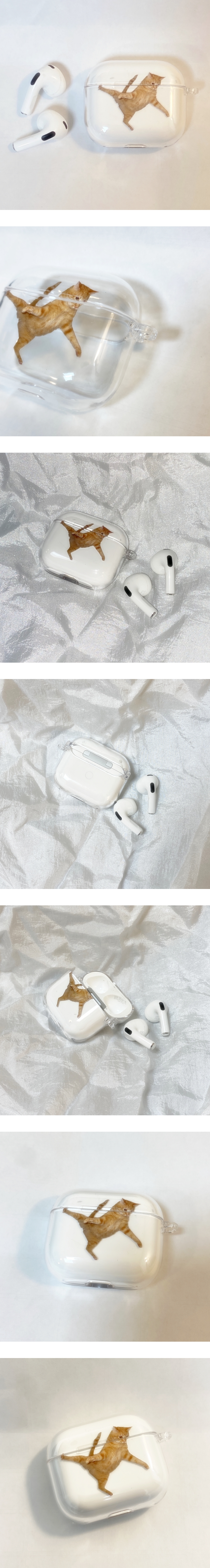귀여운 춤추는 고양이가 담긴 에어팟 케이스를 소개합니다. 변색없는 pc 소재로 황변현상이 발생하지 않아 언제나 투명함을 유지합니다. 국내산 최고급자재를 사용해 제작한 내구성 높은 사출 케이스로 추천드립니다. 오랜기간 사용시 생활기스로 인해 프린팅 까짐현상이 발생할 수 있는점 양해 부탁드립니다.