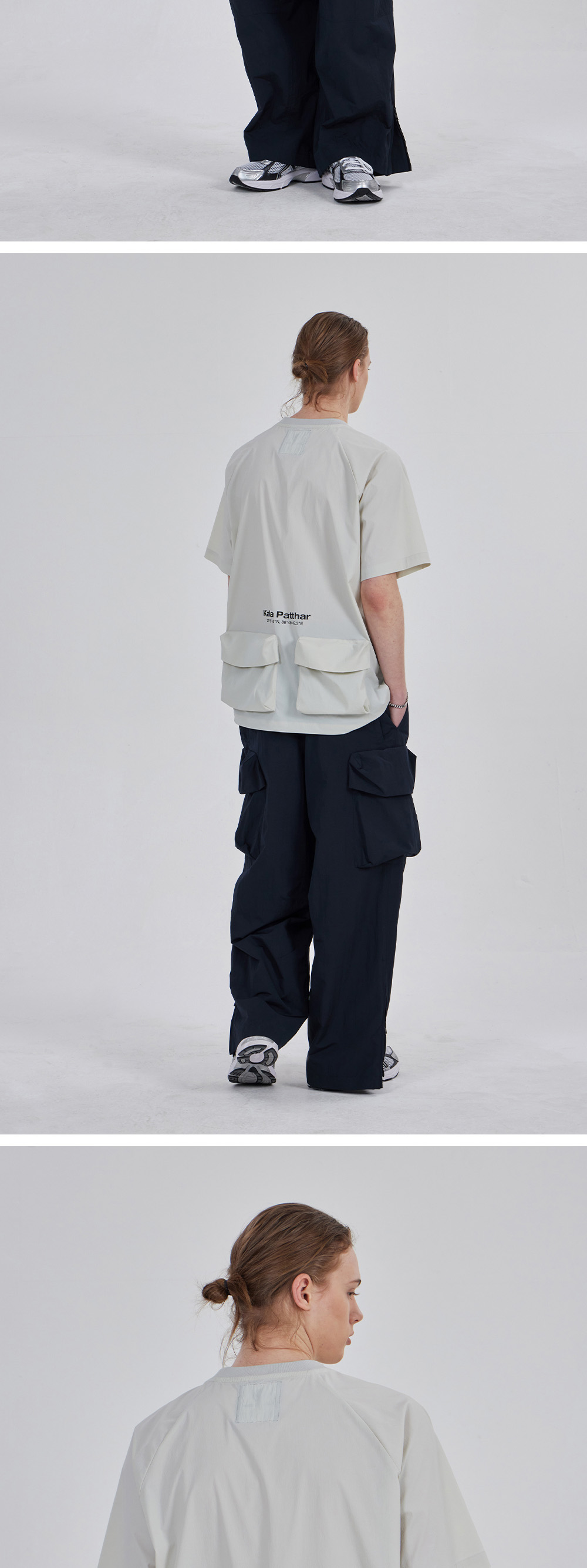 칼라파타르 우븐 로고 백포켓 티셔츠 라이트 그레이