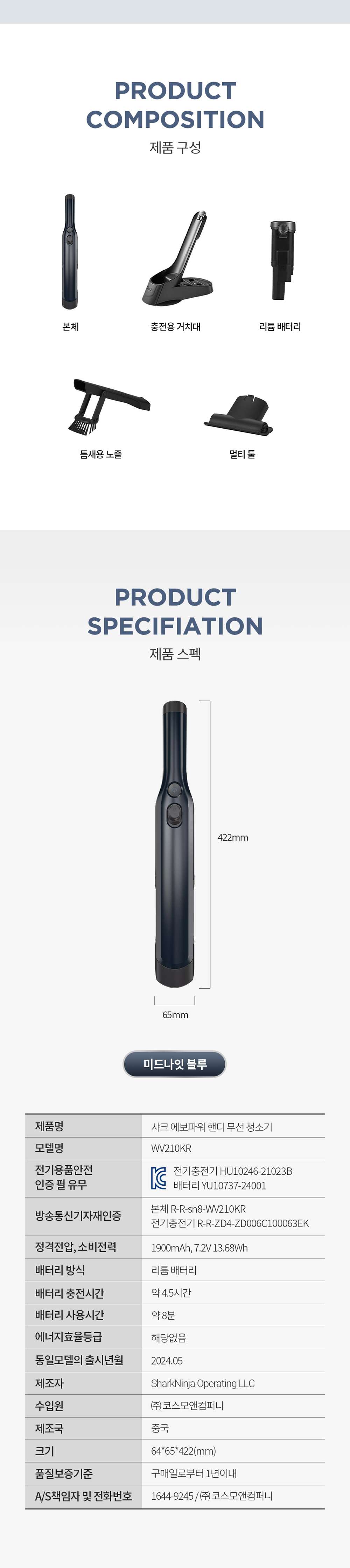 샤크 에보파워 핸디 무선청소기 WV210KR