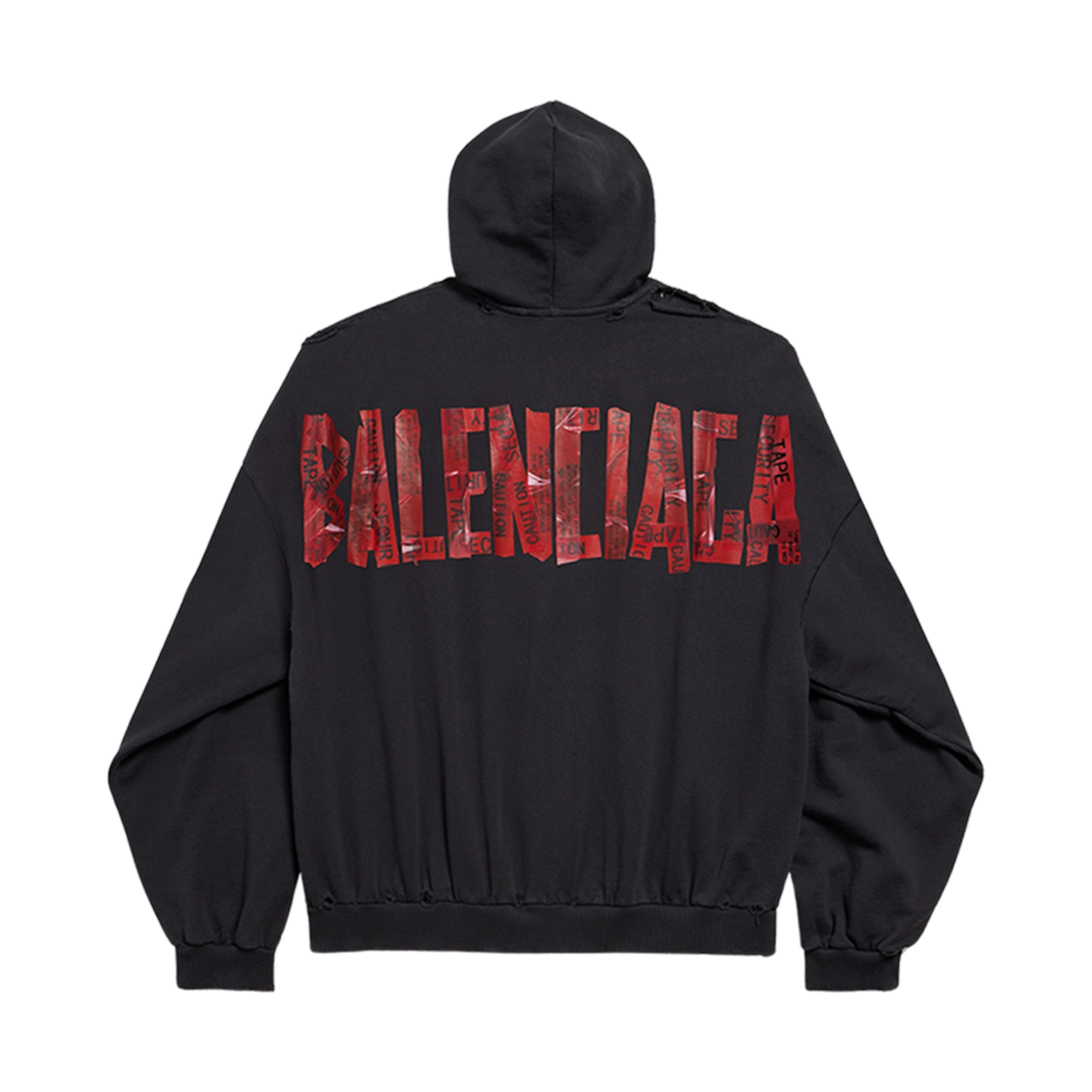 발렌시아가 시큐리티 테이프 로고 라지 집업 후드 페이디드 블랙 레드
