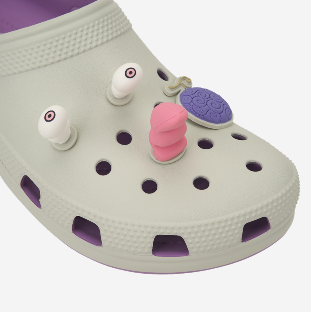 크록스 x 원피스 x 아트모스 클래식 클로그 루피 기어 5 클라우드 화이트 퍼플
