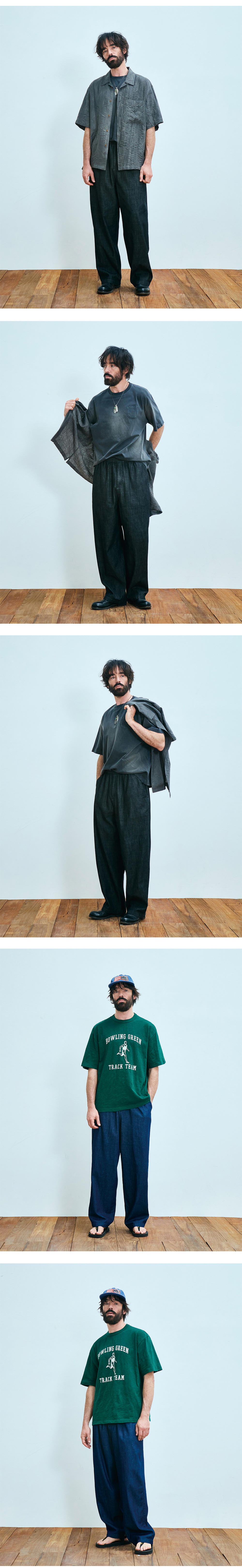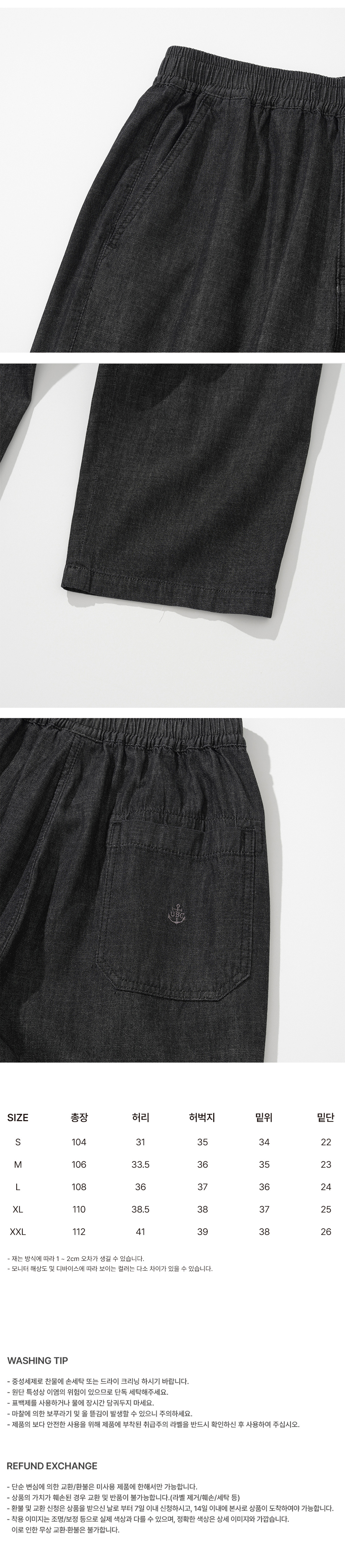유니폼 브릿지 이지 데님 스트링 팬츠 6oz 블랙 워시드
