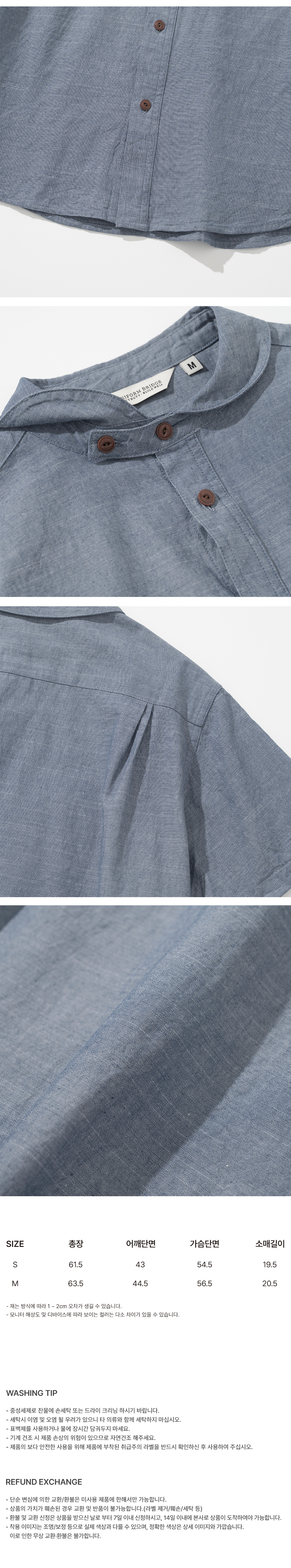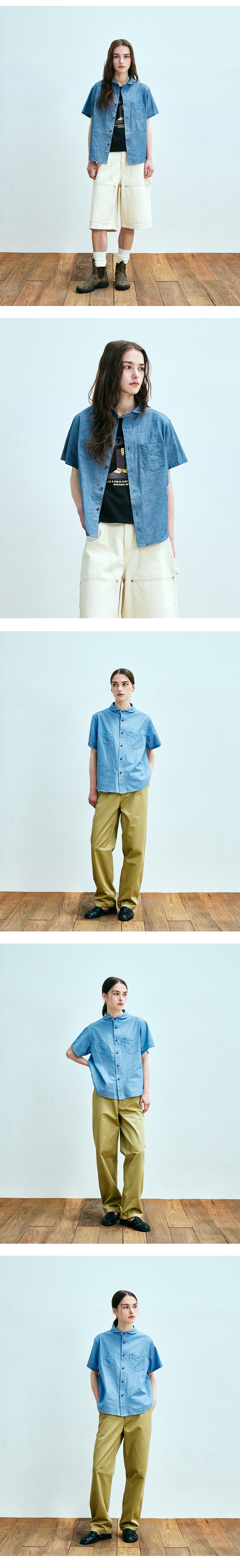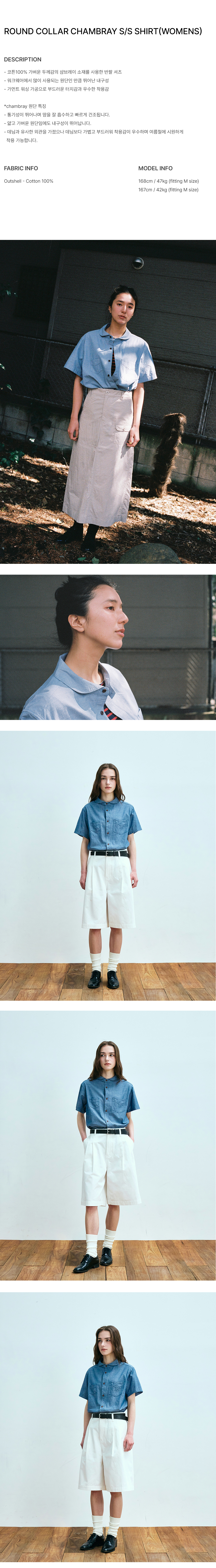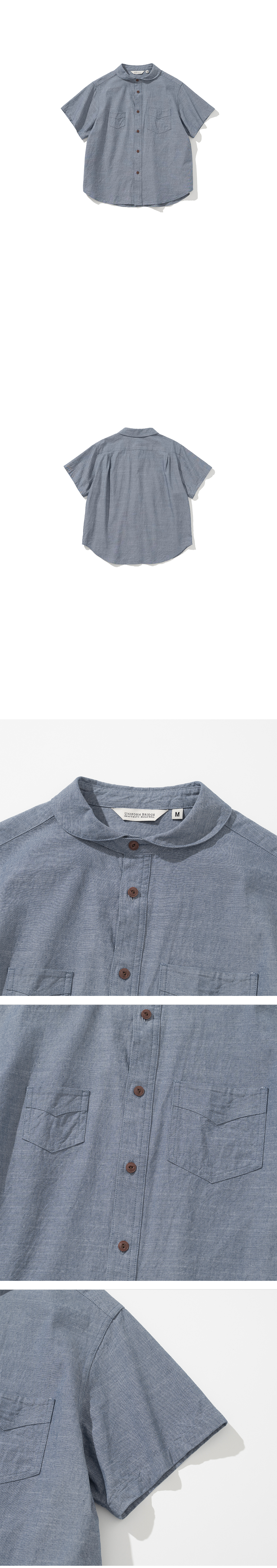 유니폼 브릿지 라운드 칼라 샴브레이 숏슬리브 셔츠 우먼 네이비